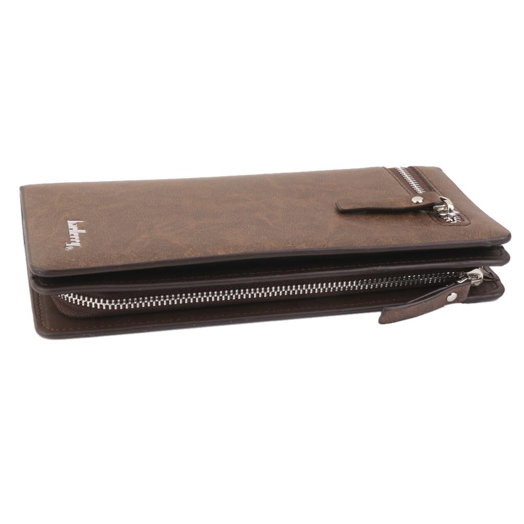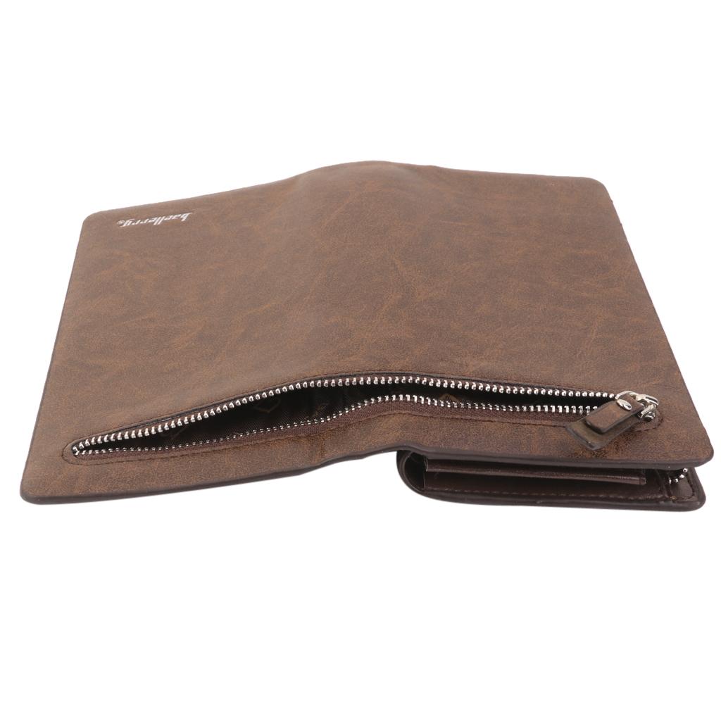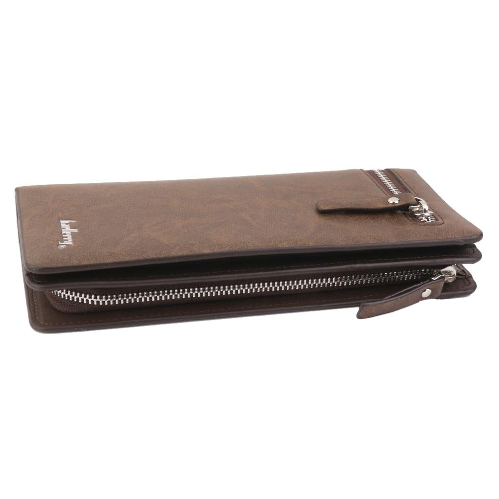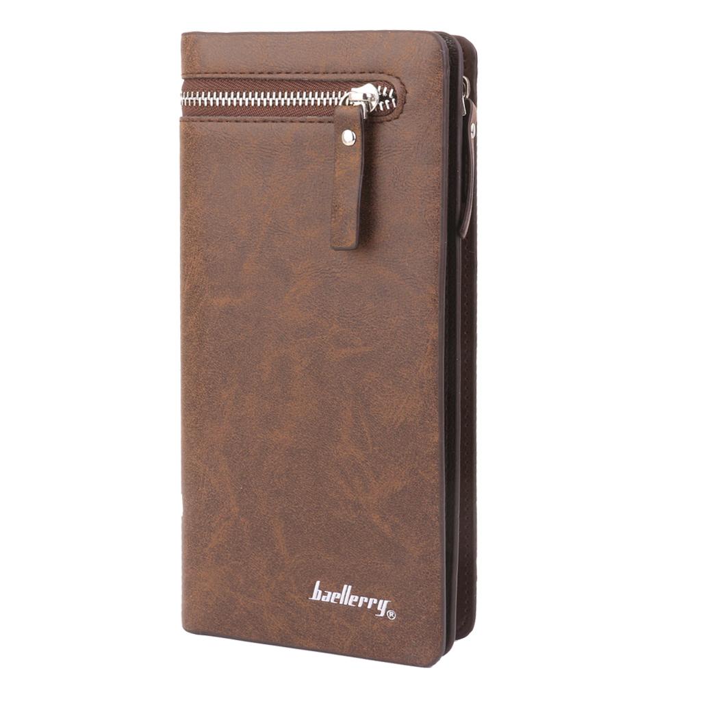 Men's PU Card Holder Zip Wallet Purse Billfold Clutch Checkbook Light Brown
