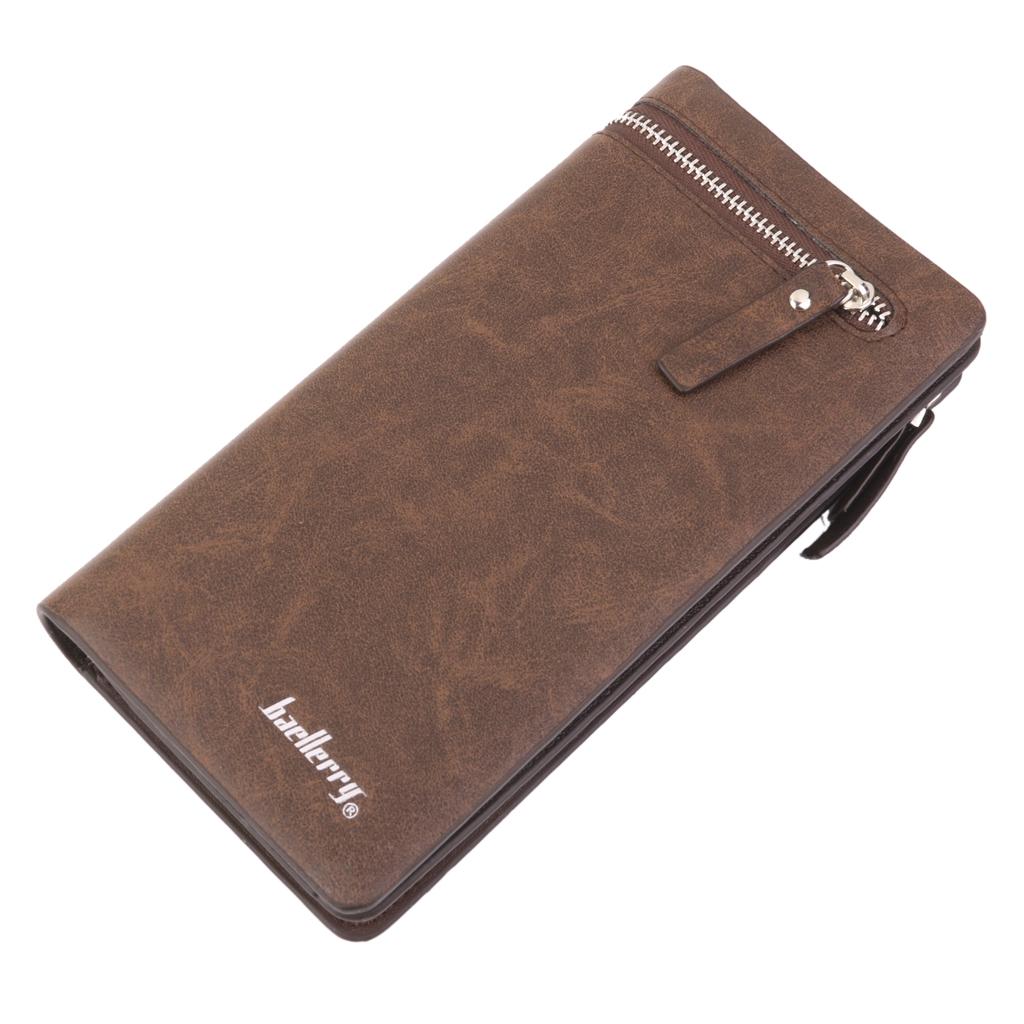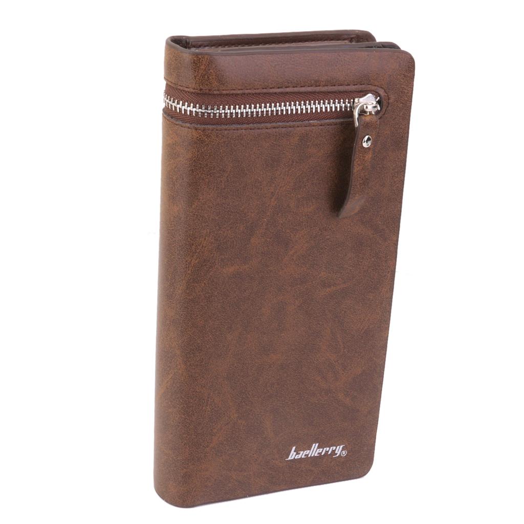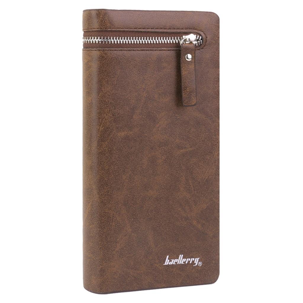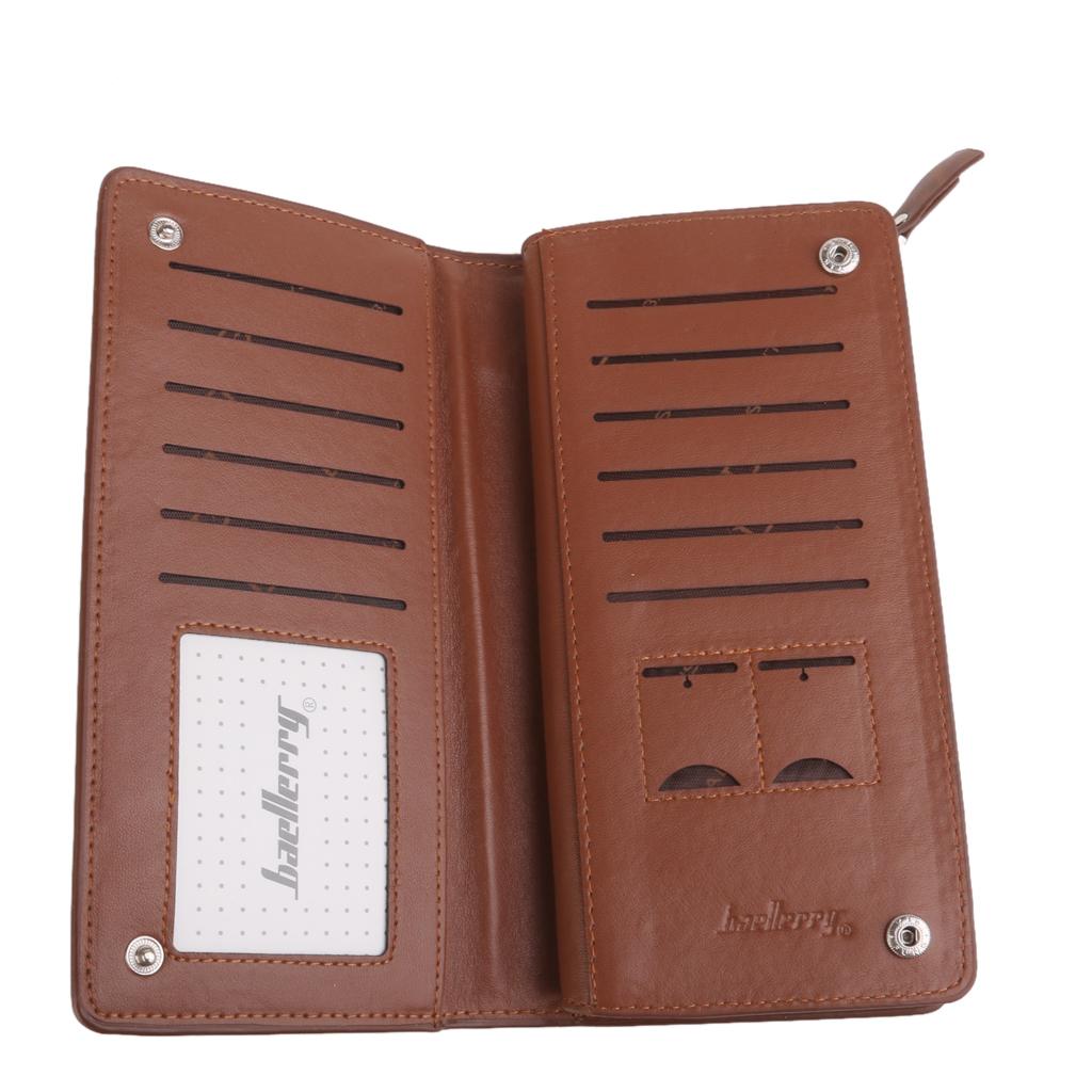 Men's PU Card Holder Zip Wallet Purse Billfold Clutch Checkbook Light Brown