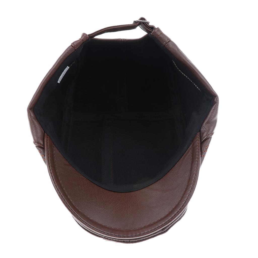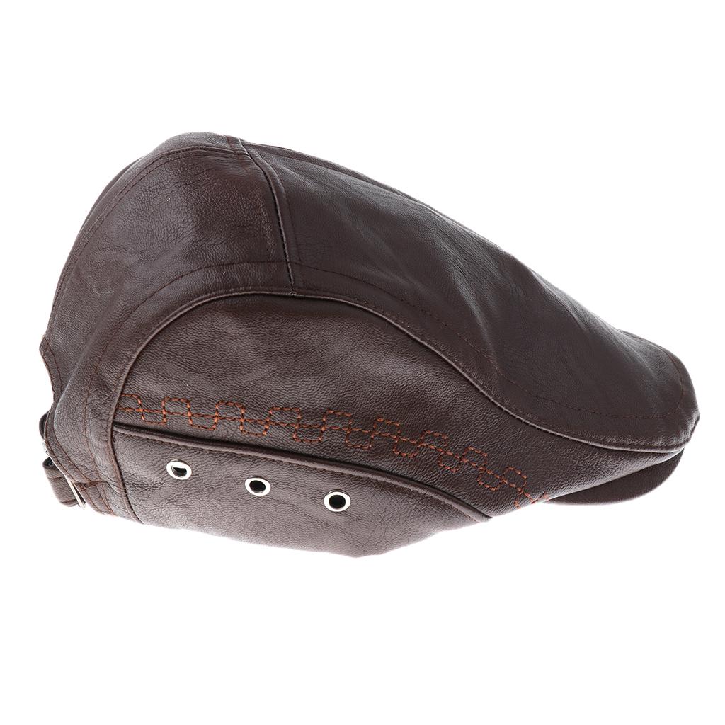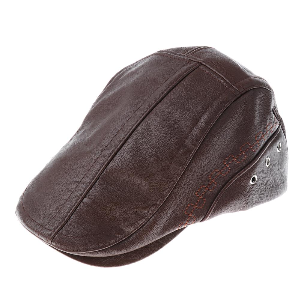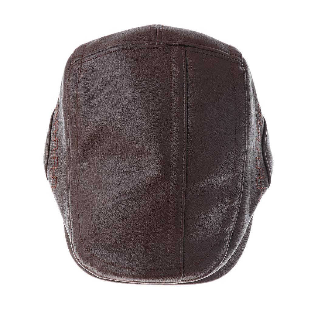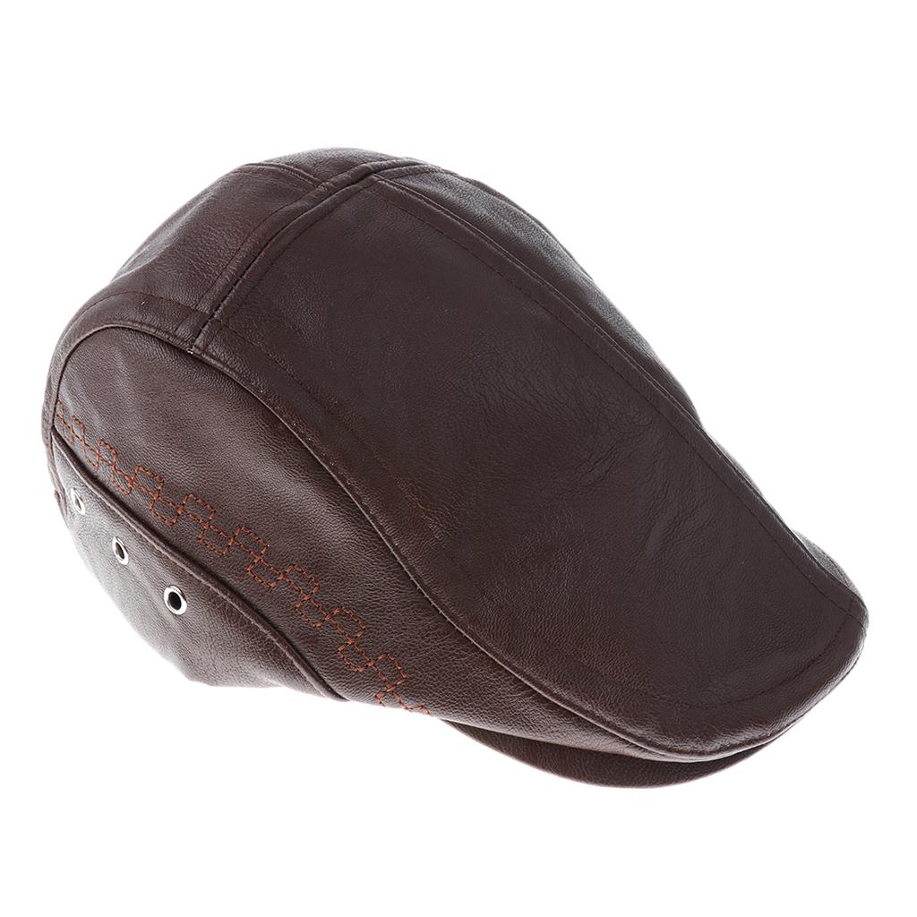 Men Pu Leather Cap Driving Flat Hat Cabbie Beret Newsboy Ivy Hat.
