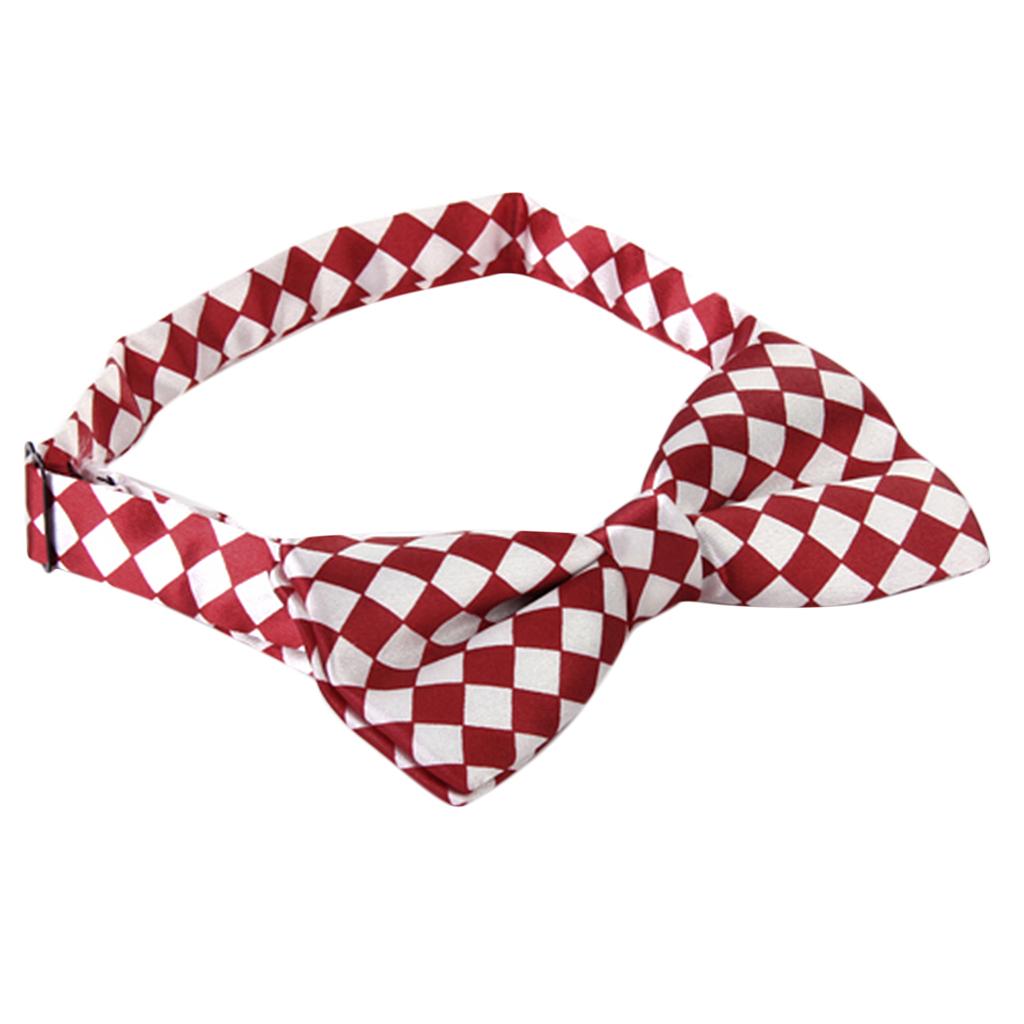 A truly classy bow tie with darkred and white grids will make you a well-dressed man for a wide range of functions.