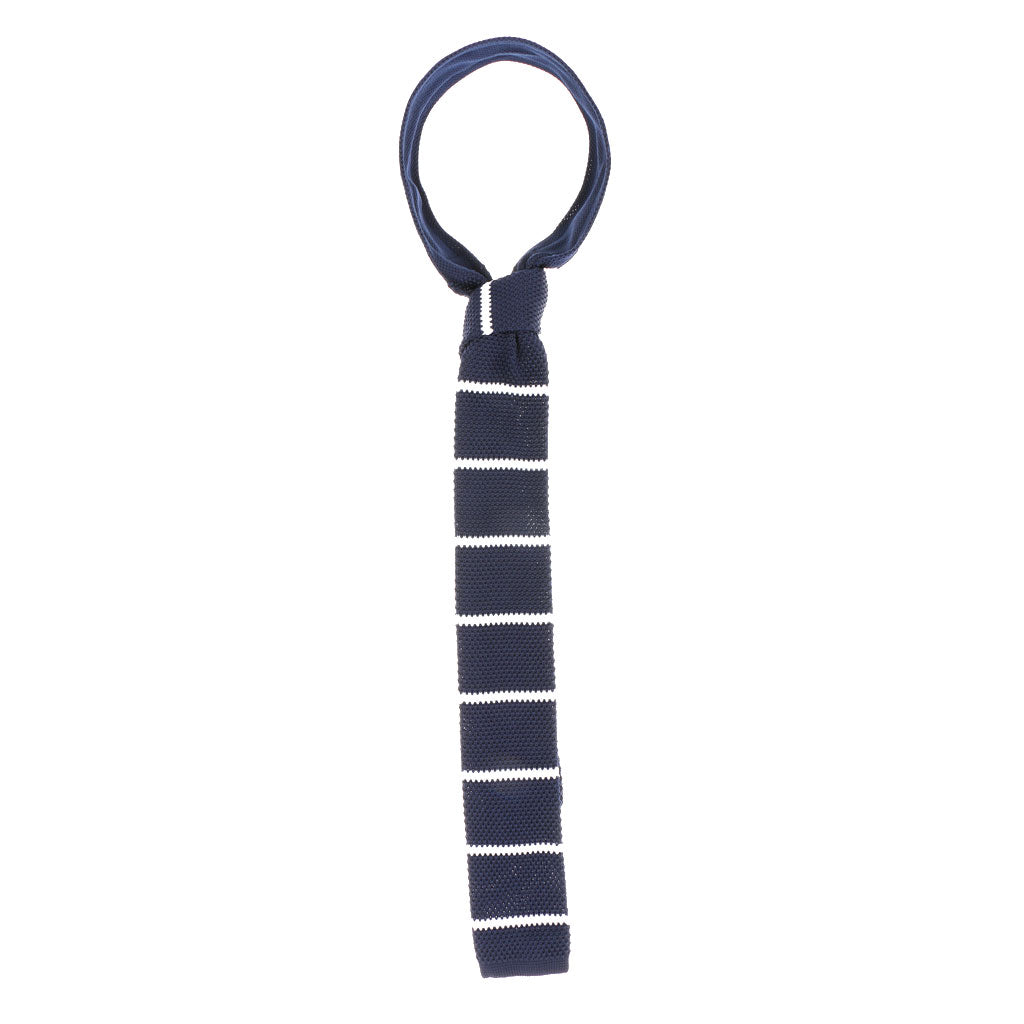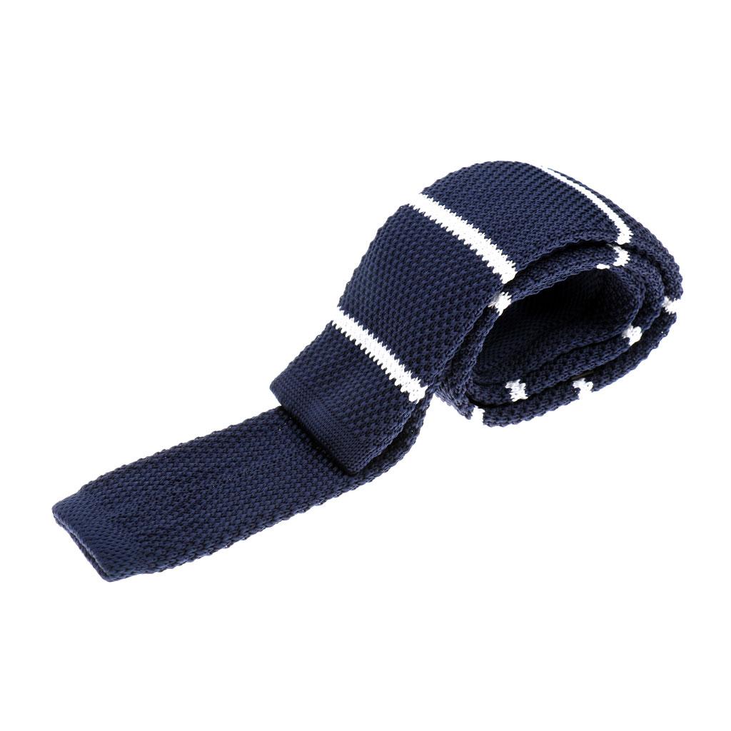 Men's Wool Knitted Flat Woven Tie Necktie (Navy Blue)