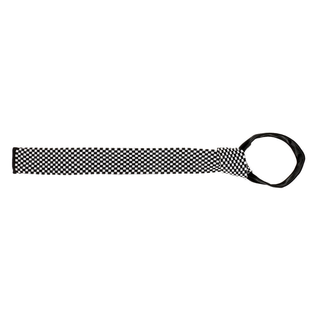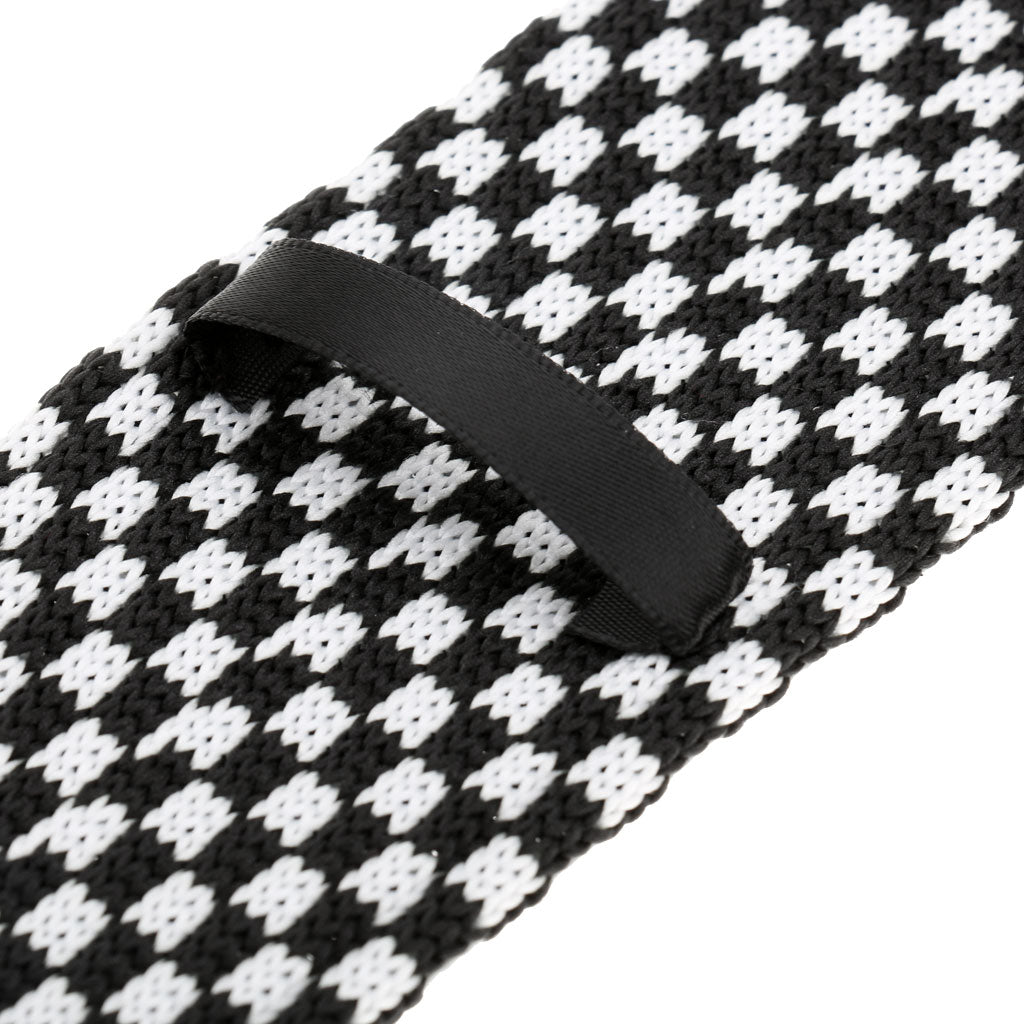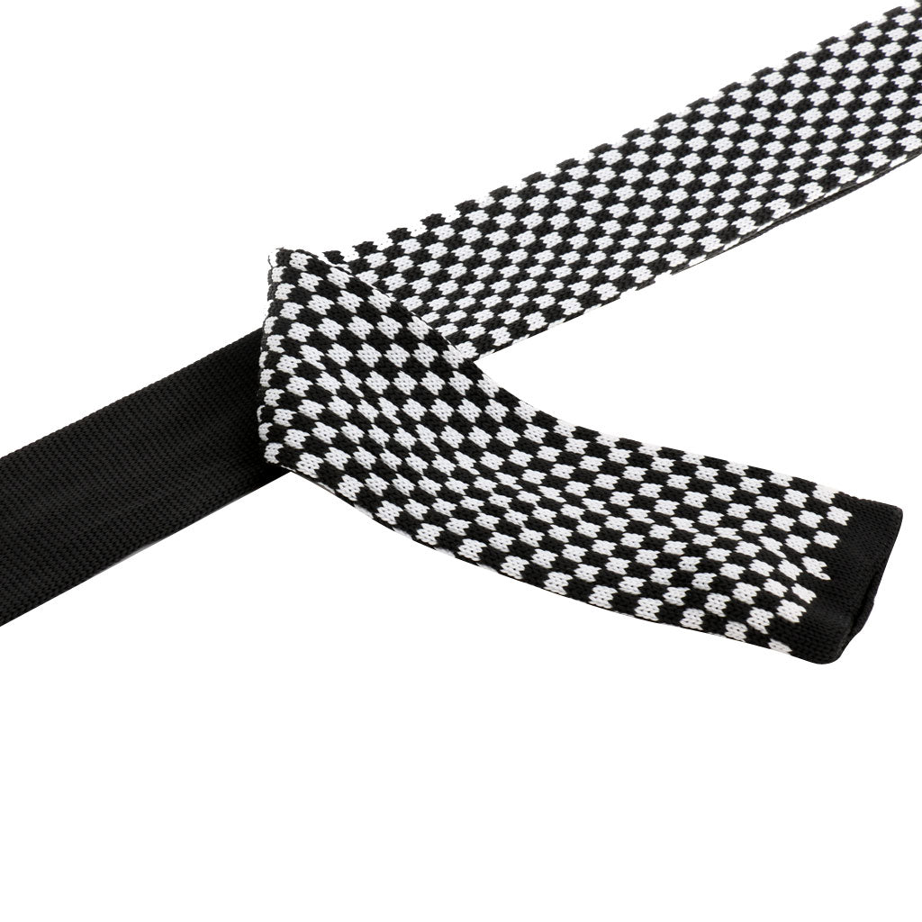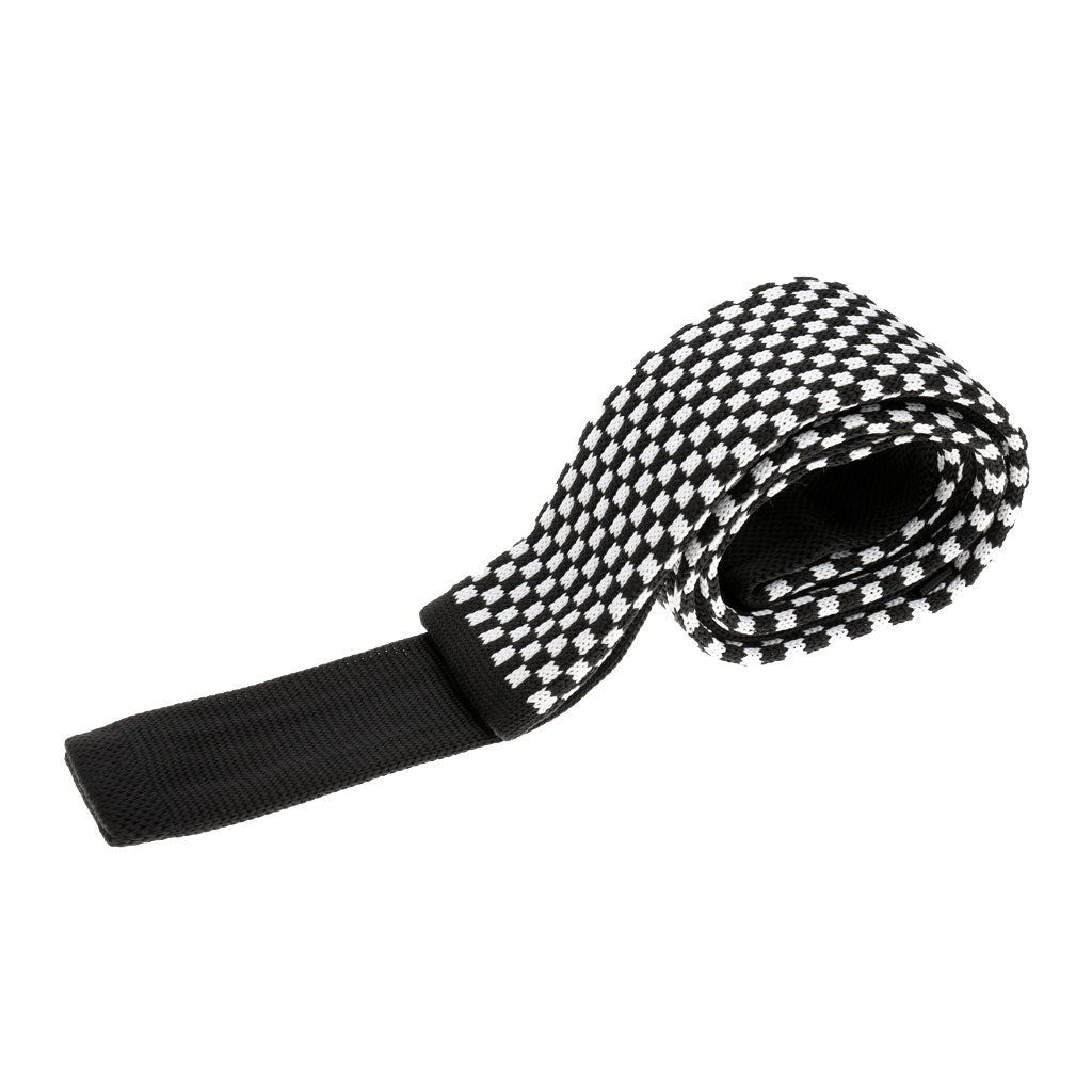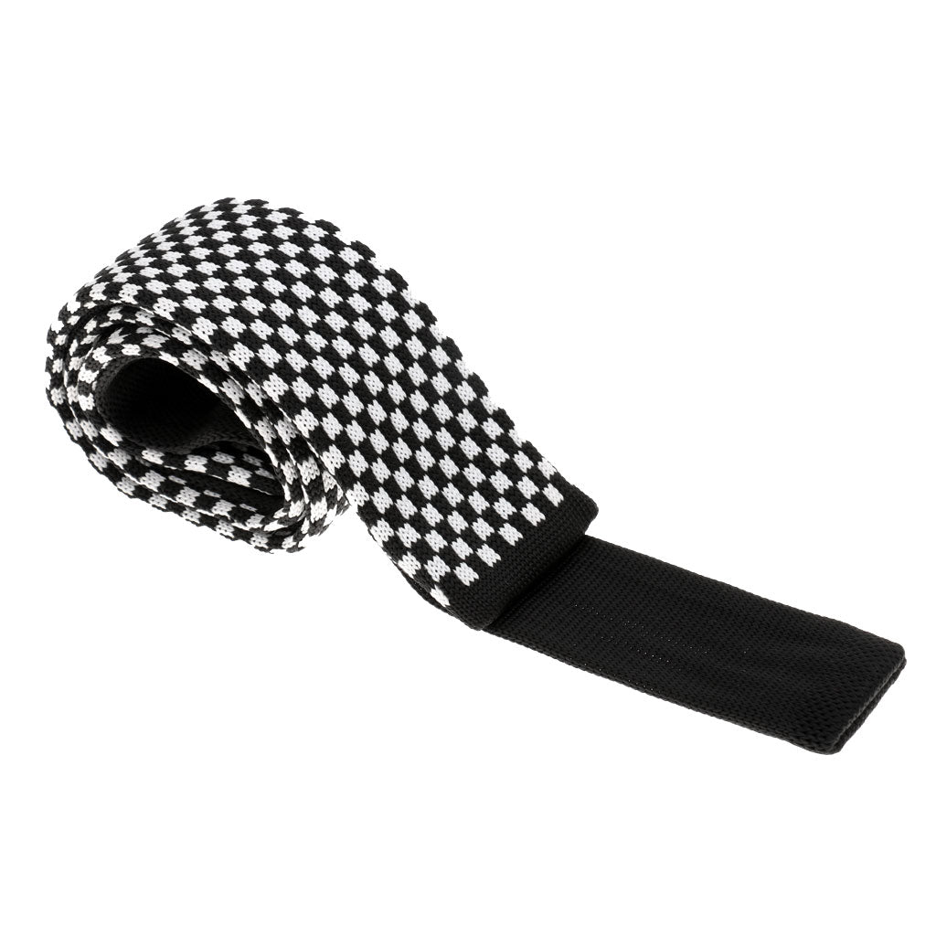Men's Wool Knitted Flat Woven Tie Necktie(Black and White Plaid)