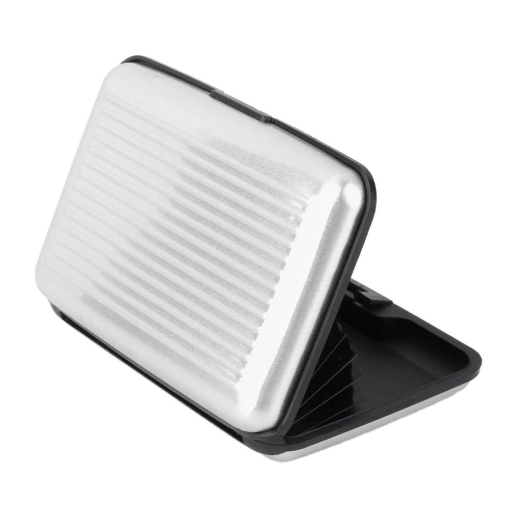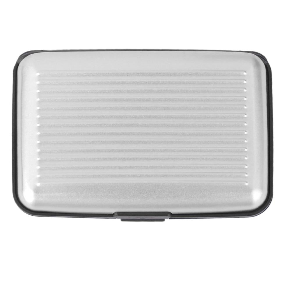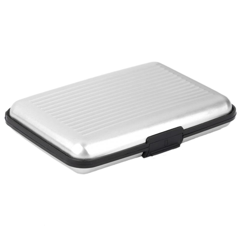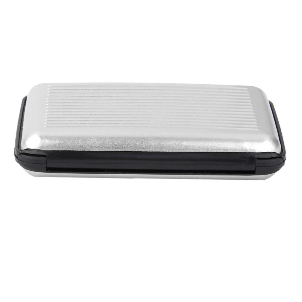 Mini Waterproof Striped Aluminum Metal Case ID Credit Card Holder - Silver