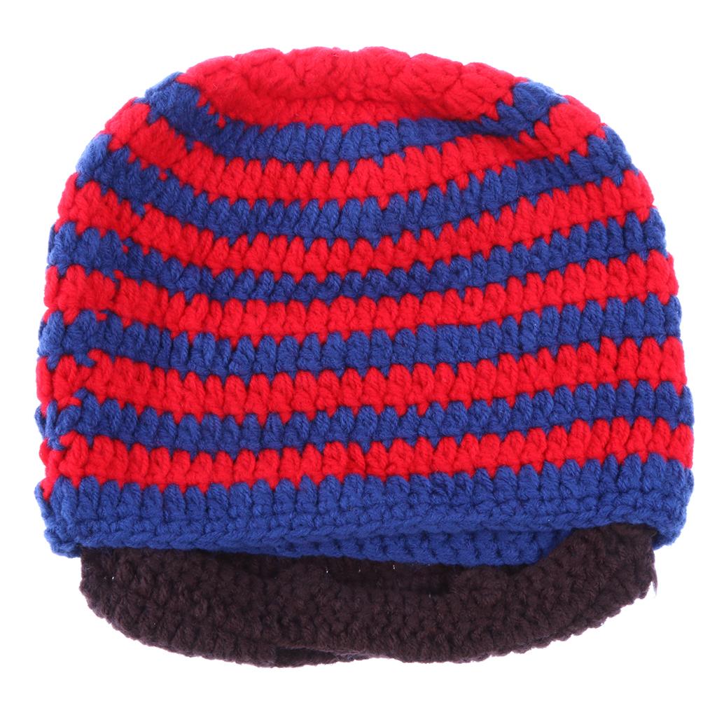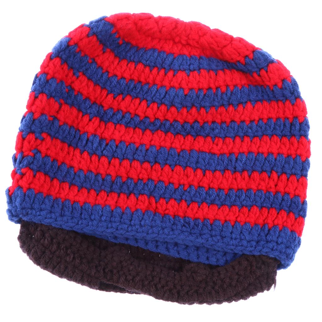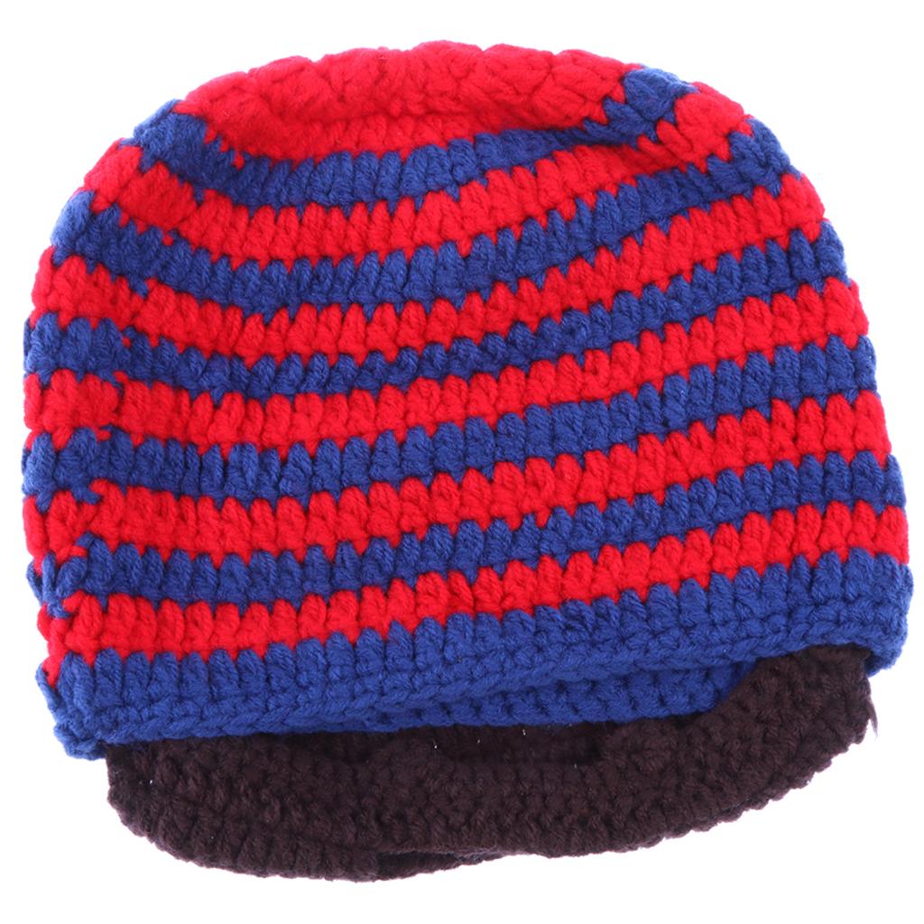 Novelty Beard Hat Face Mask Winter Ski Knit Beanie Cap with Detachable Beard Red Blue