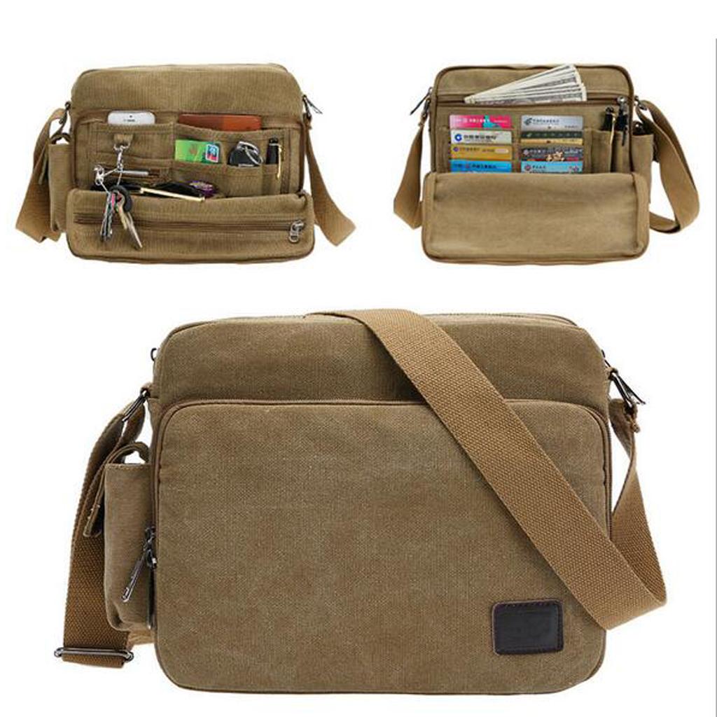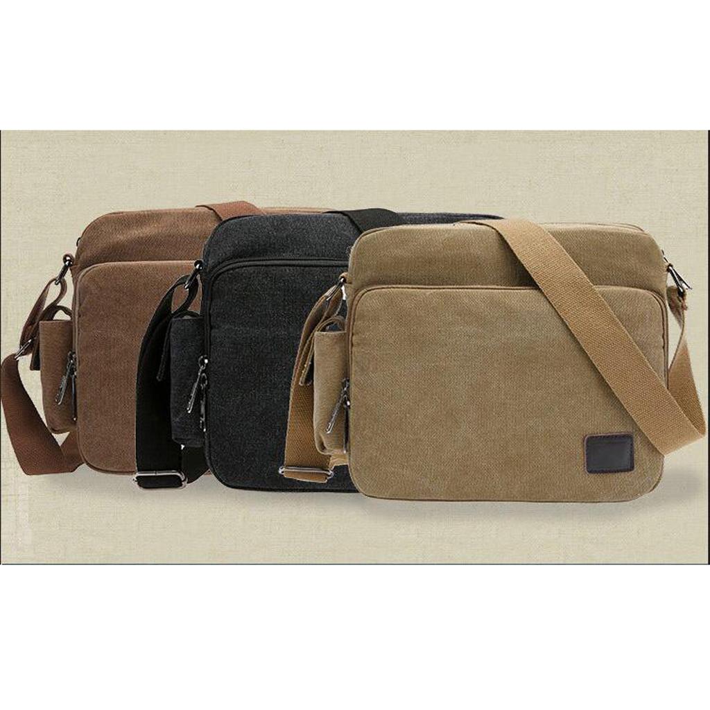 Retro Multifunction Canvas Messenger Bag Crossbody Shoulder Hand Bag Black