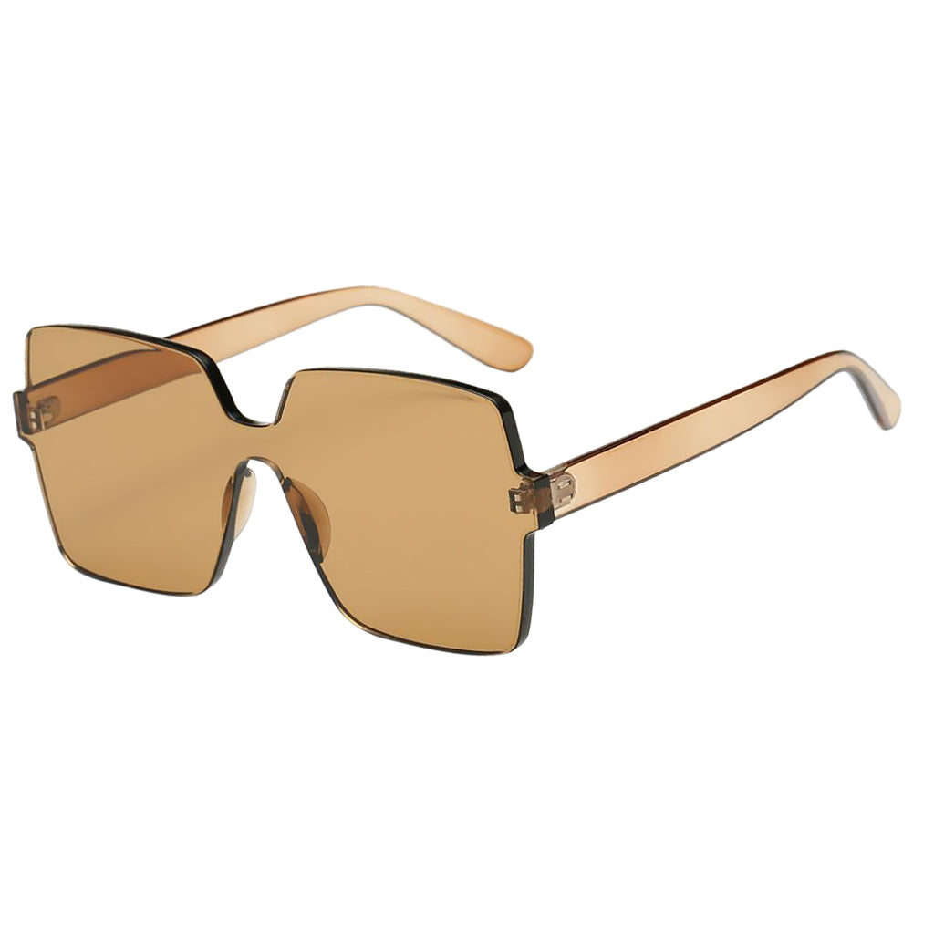 Retro Square Rimless Plastic Outdoor Sunglasses Men Tea