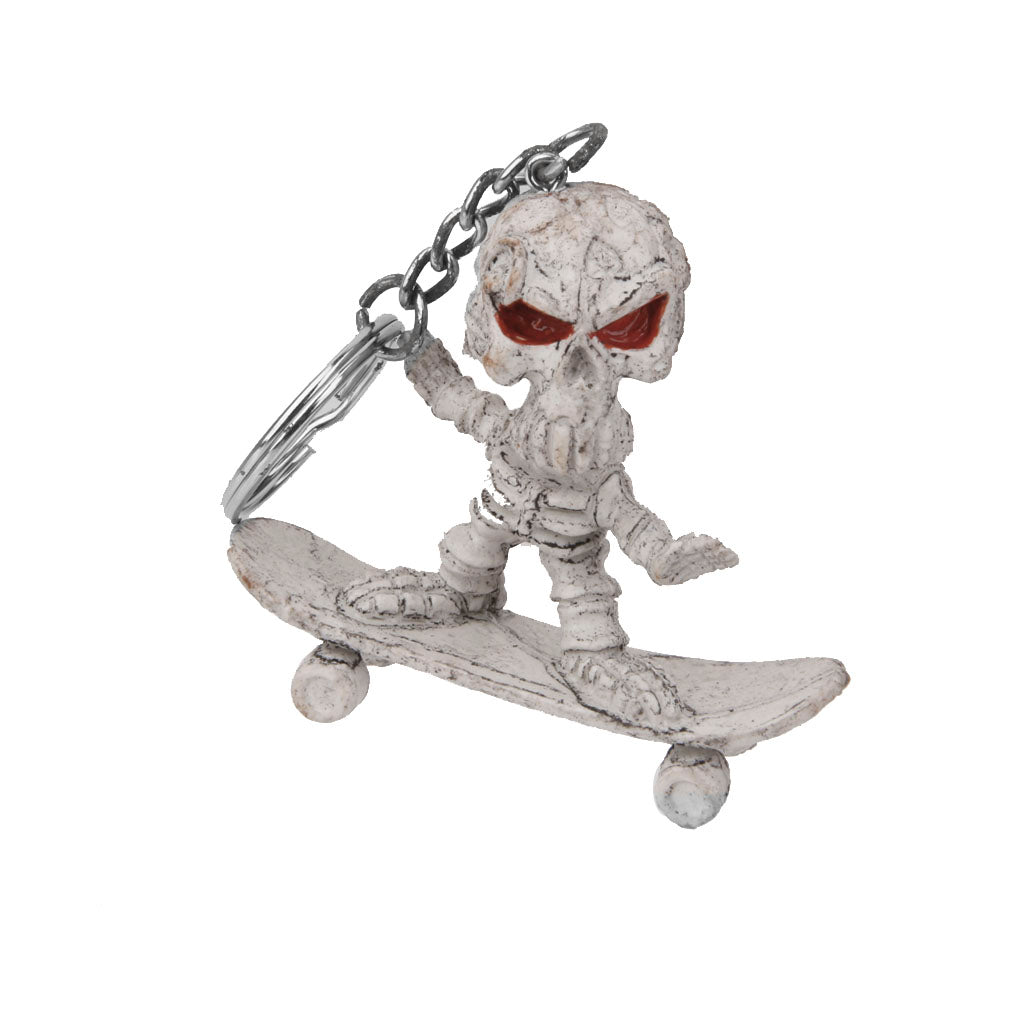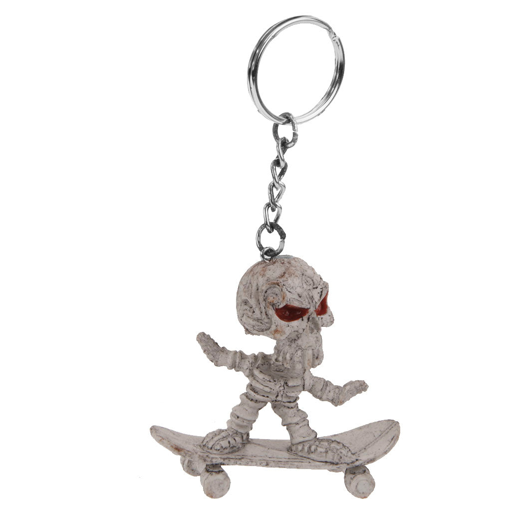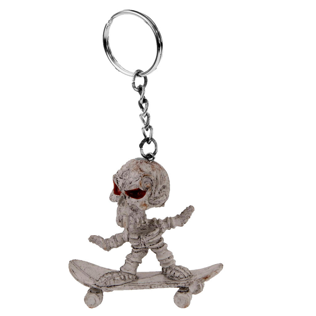 • Stylish skull skeleton standing on skateboard pendant purse bag key ring keychain