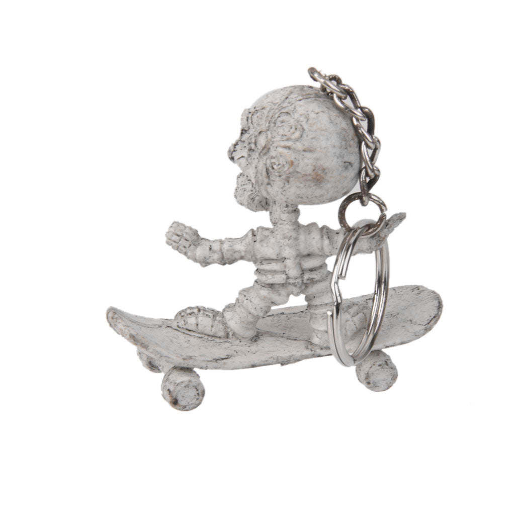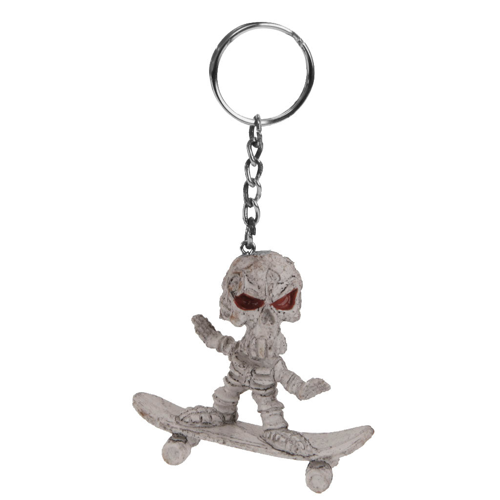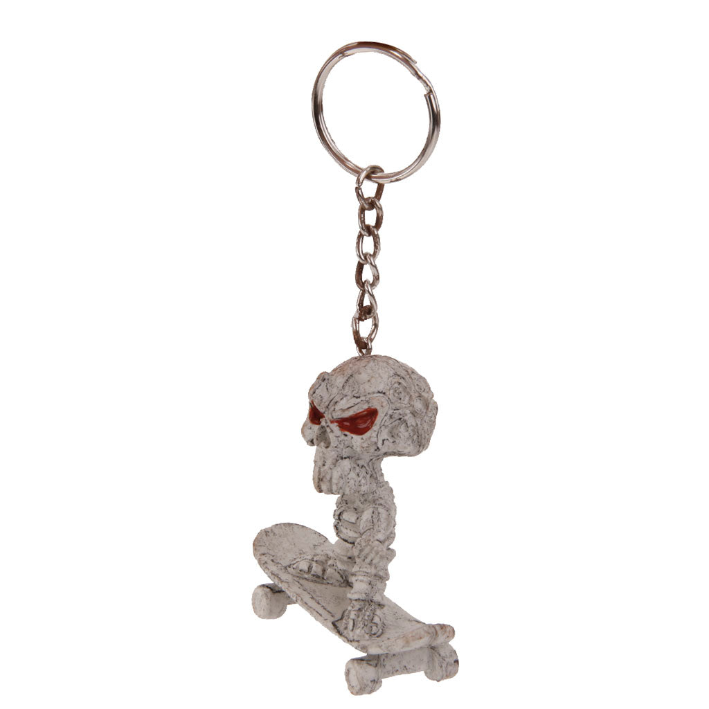 • Stylish skull skeleton standing on skateboard pendant purse bag key ring keychain