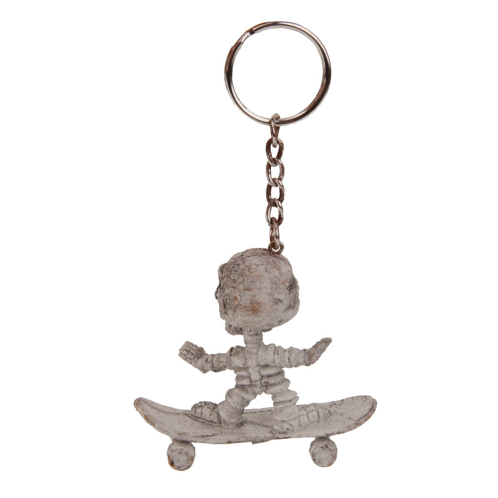 Skull Skeleton Standing on Skateboard Pendant Purse Bag Keyring Key Chain