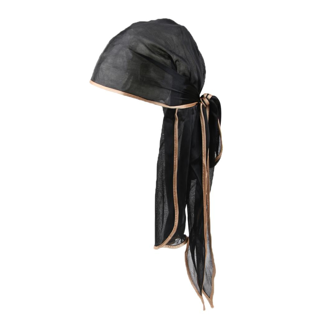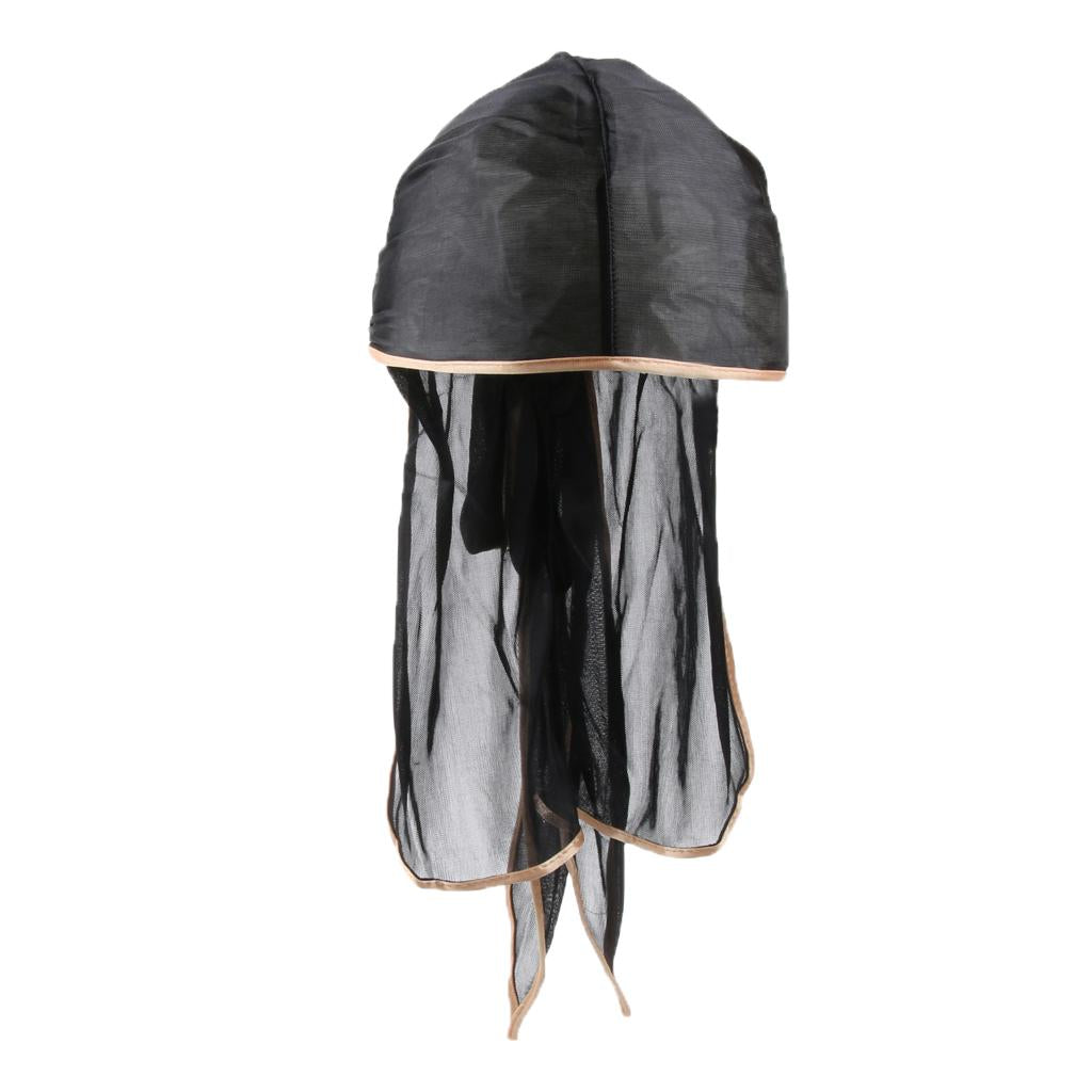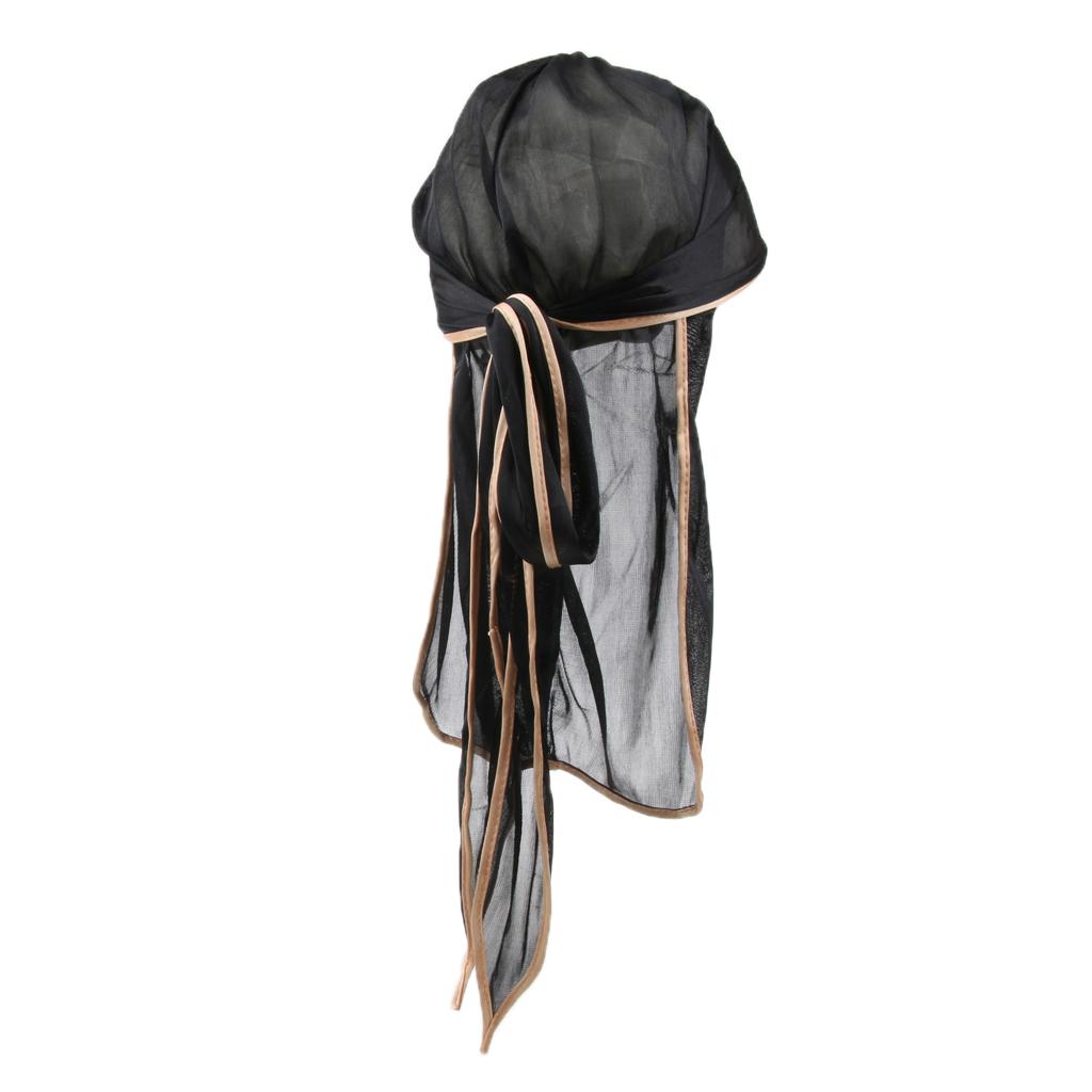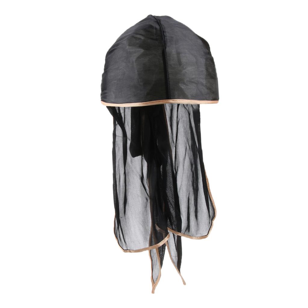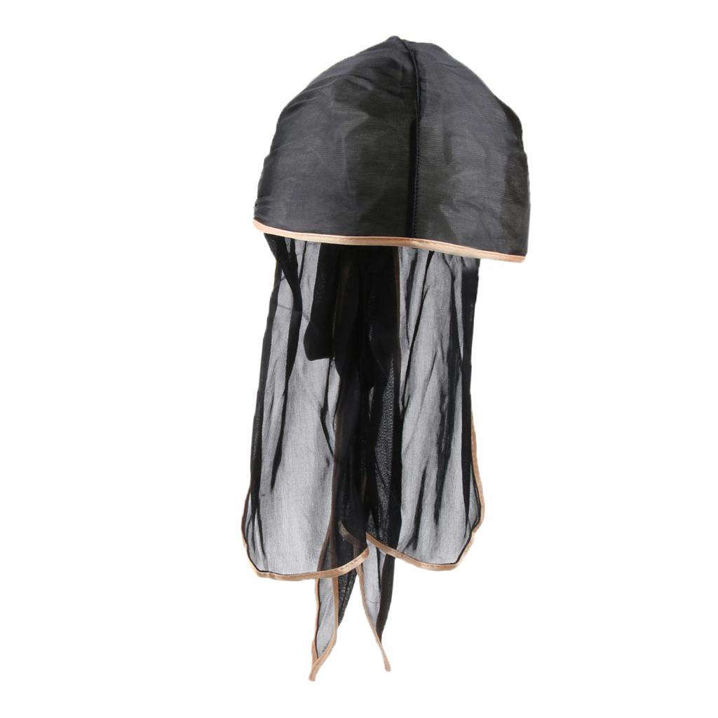 Unisex Bandana Hat Silky Durag Long Tail Headwrap Biker Chemo Cap Black gold