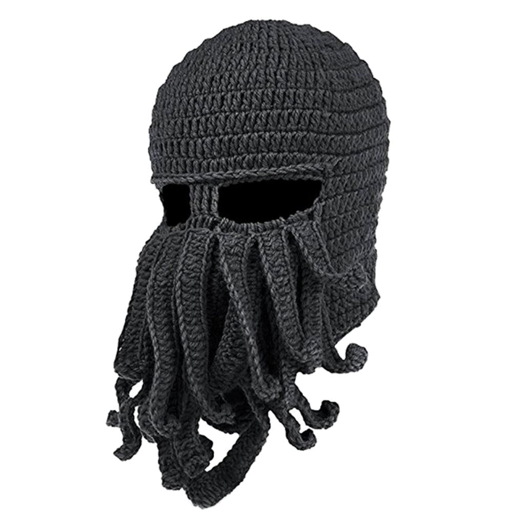 Octopus Winter Warm Knitted Wool Ski Face Mask Knit Beard Squid Beanie Hat Cap.