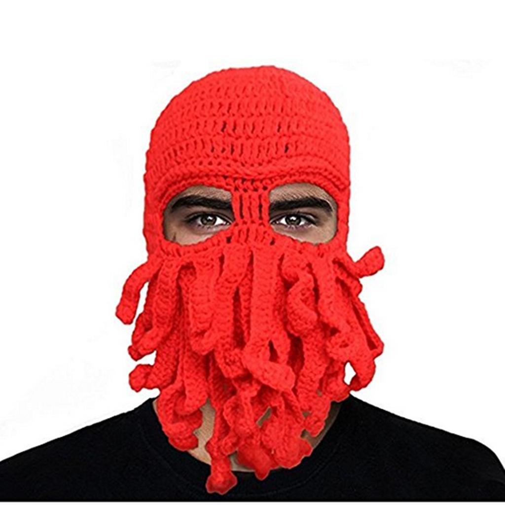 Octopus Winter Warm Knitted Wool Ski Face Mask Knit Beard Squid Beanie Hat Cap.