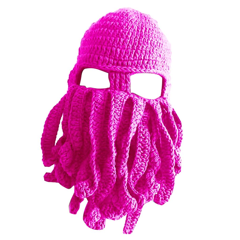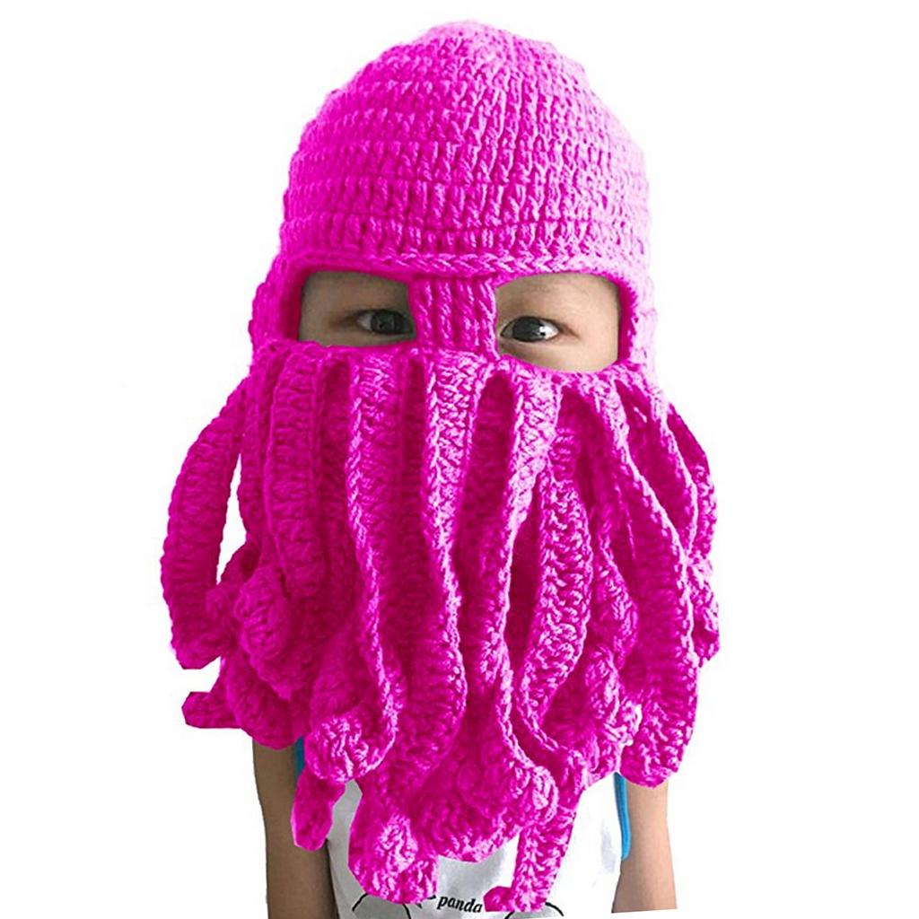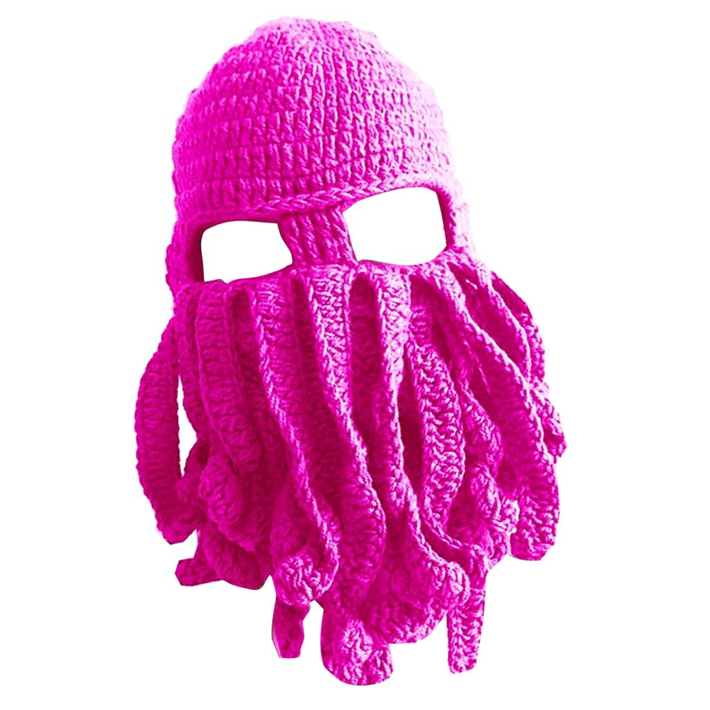 Unisex Beard Hat Knit Beanie Cap Winter Warm Octopus Hat Windproof Funny Rose