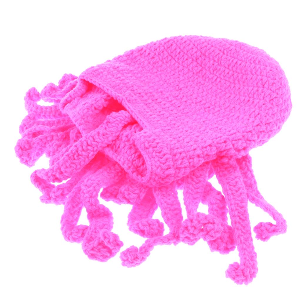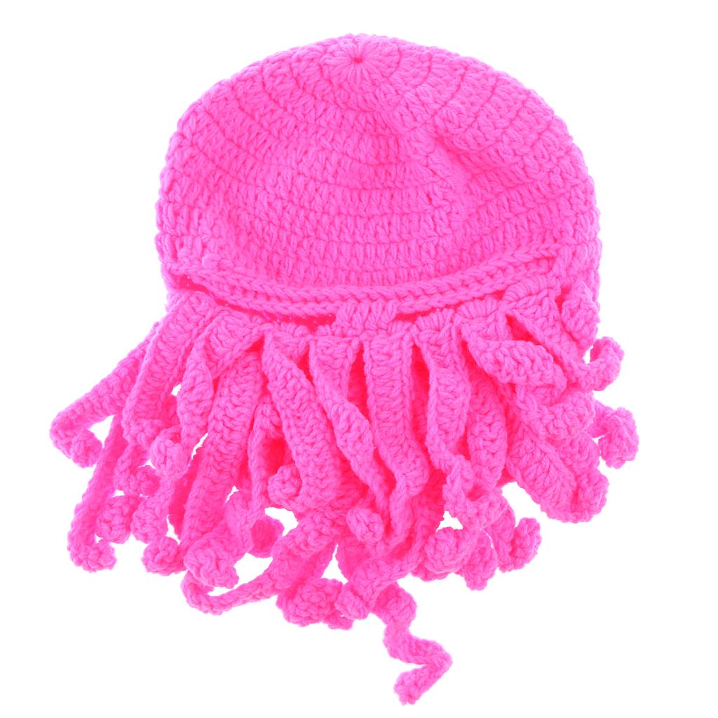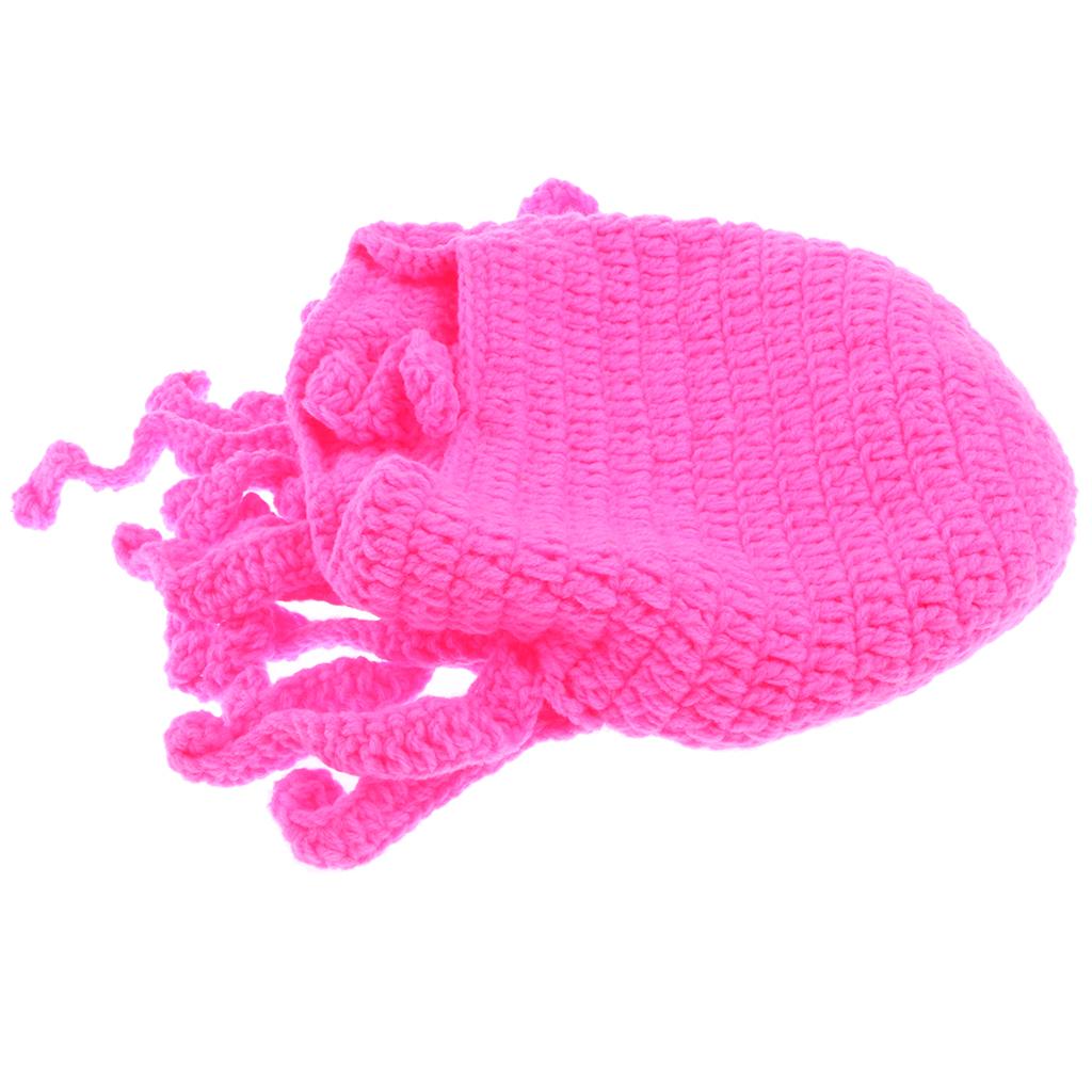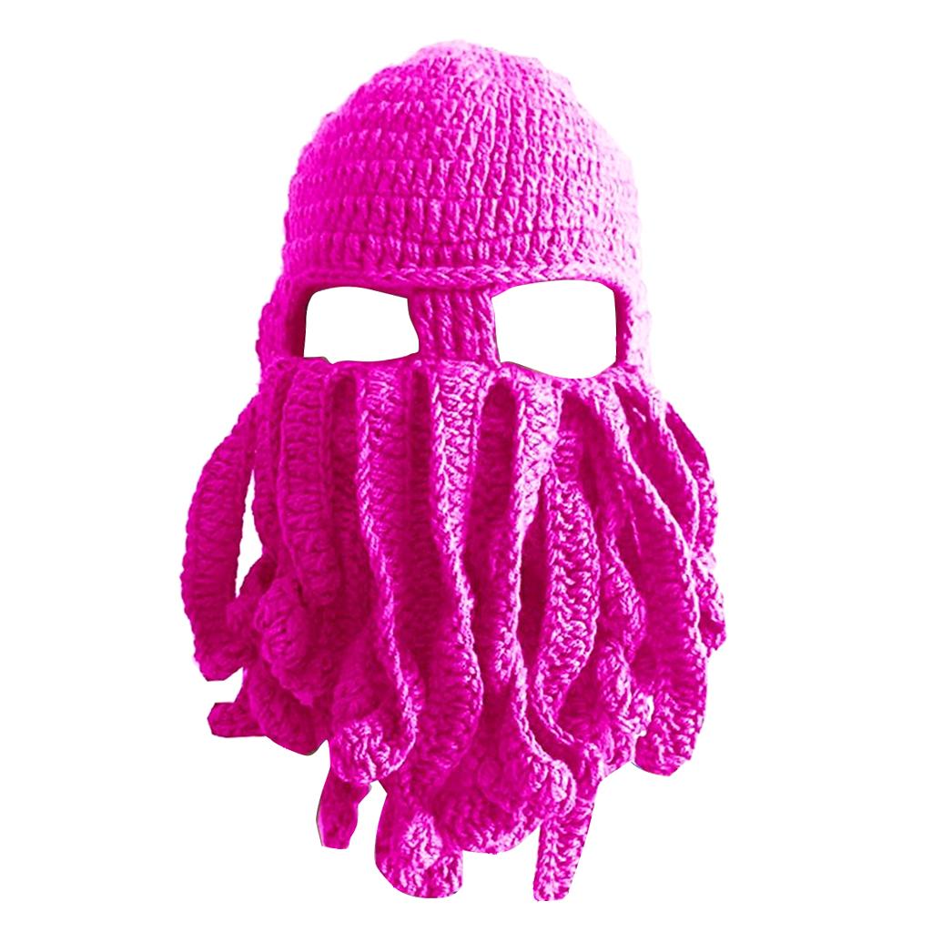 Unisex Beard Hat Knit Beanie Cap Winter Warm Octopus Hat Windproof Funny Rose