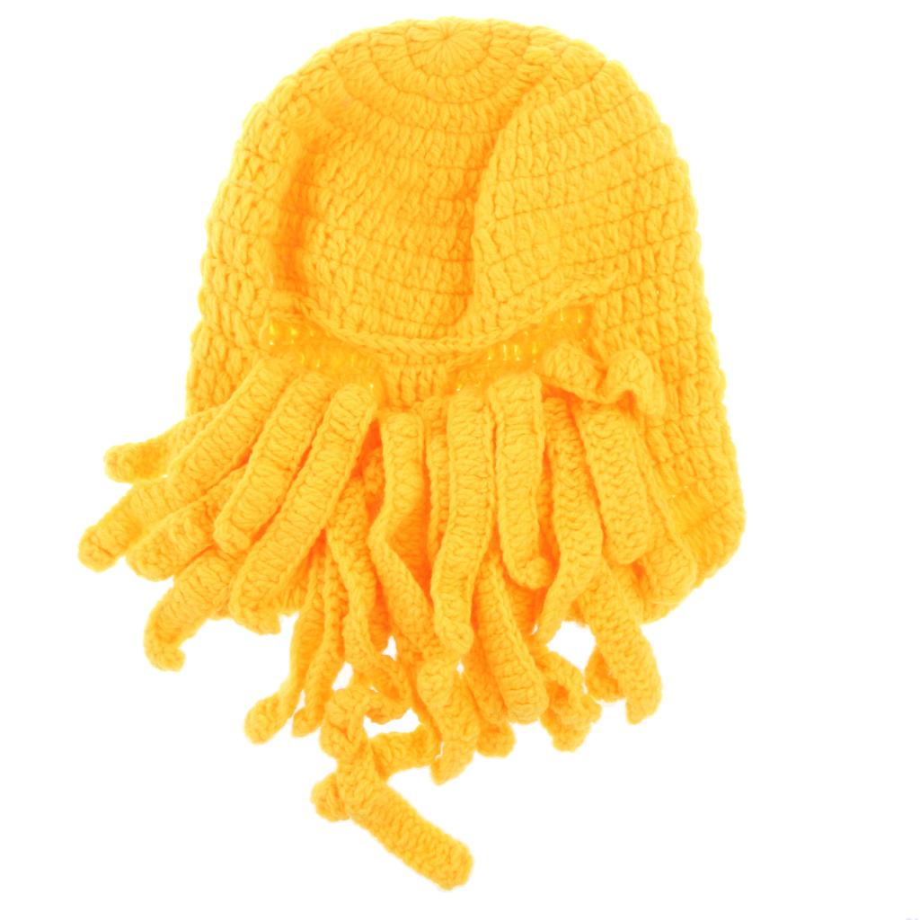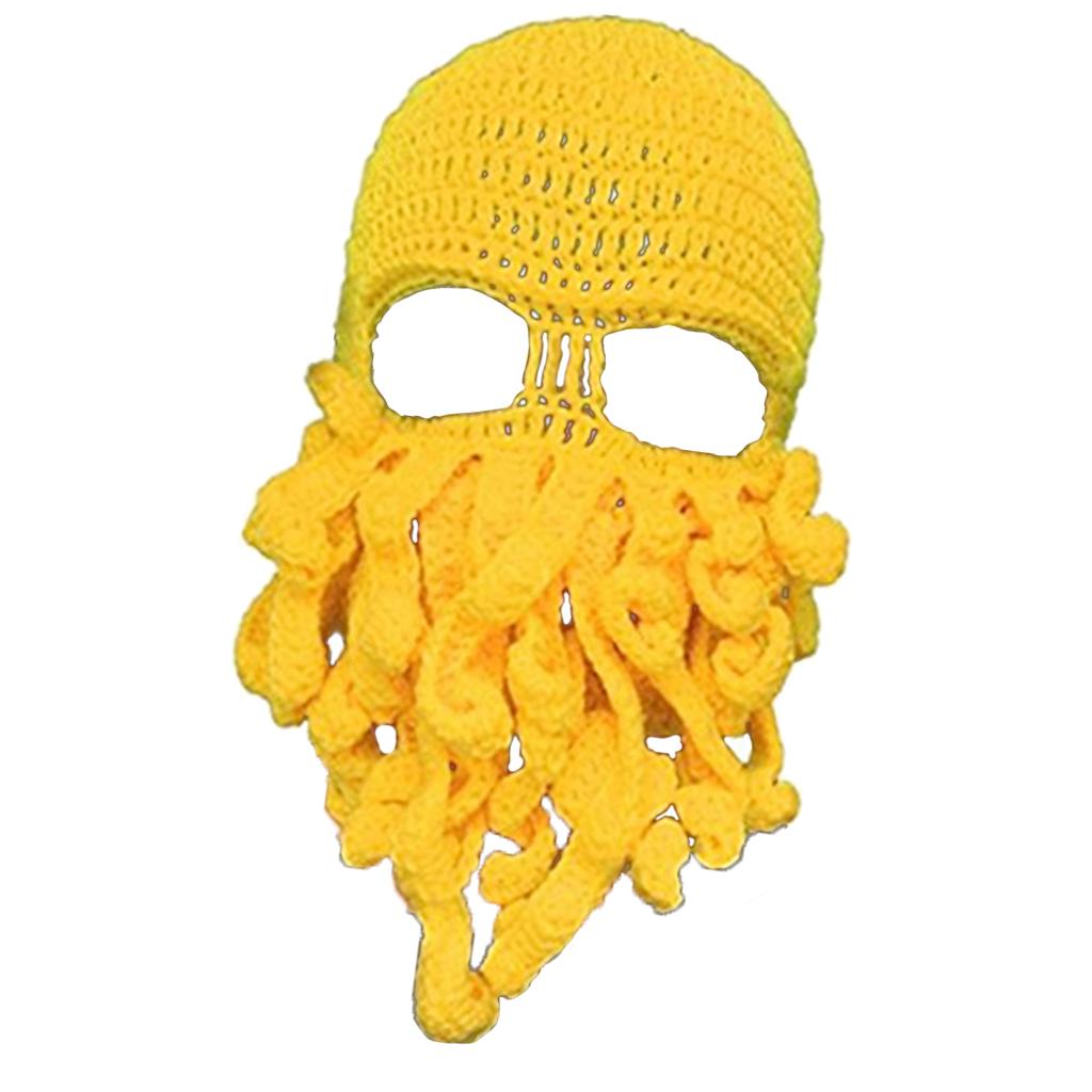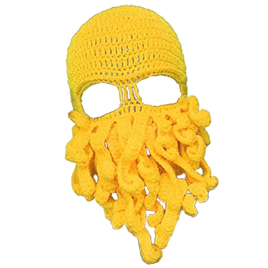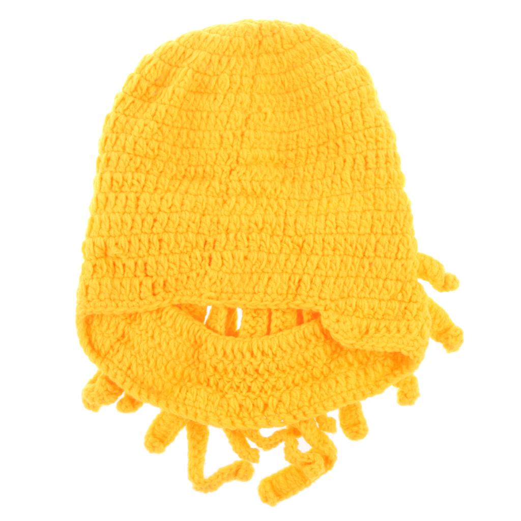 Unisex Beard Hat Knit Beanie Cap Winter Warm Octopus Hat Windproof Funny Yellow