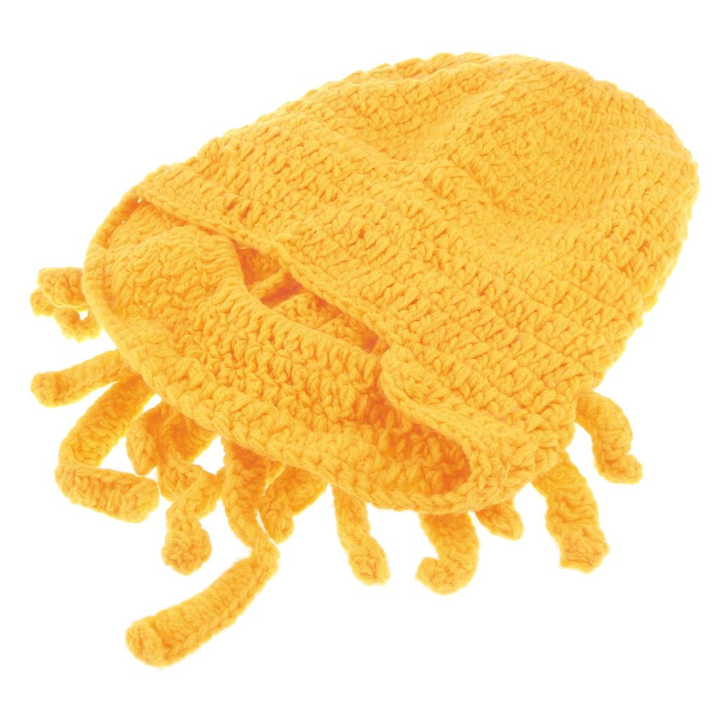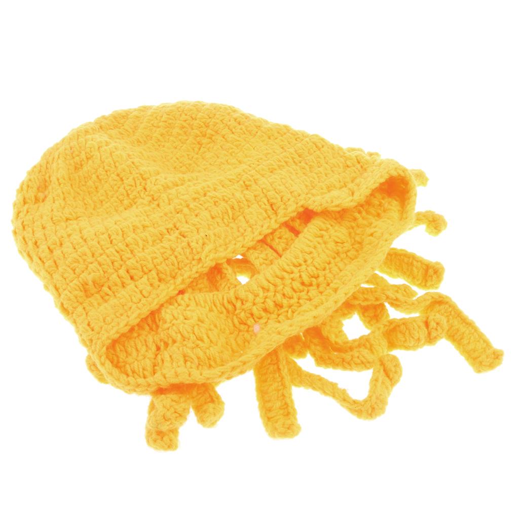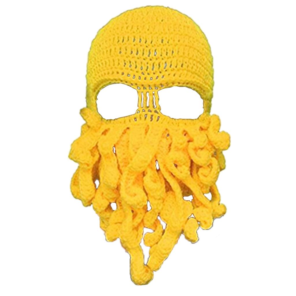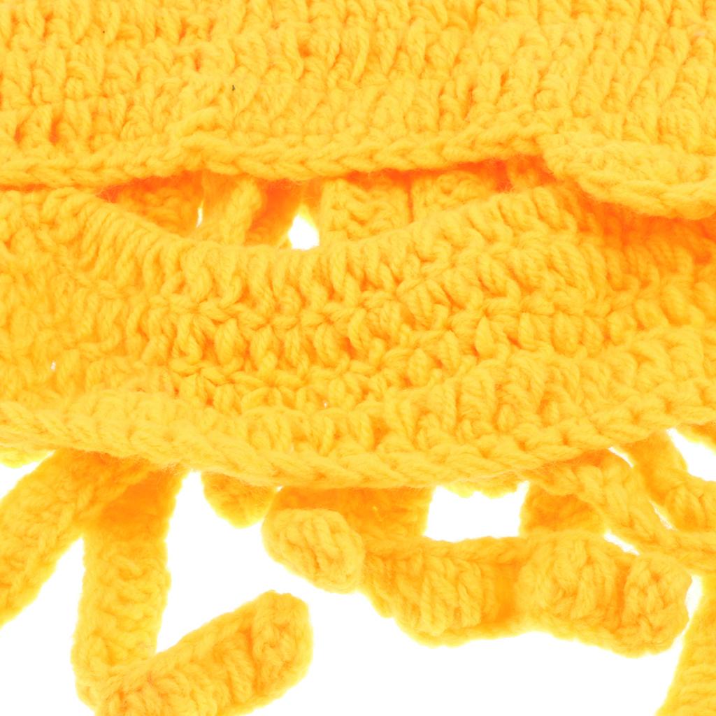Unisex Beard Hat Knit Beanie Cap Winter Warm Octopus Hat Windproof Funny Yellow