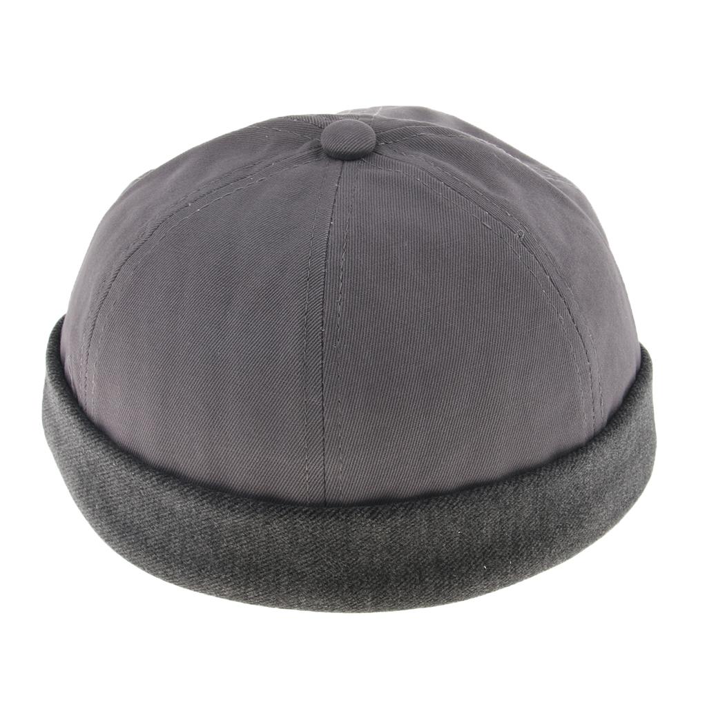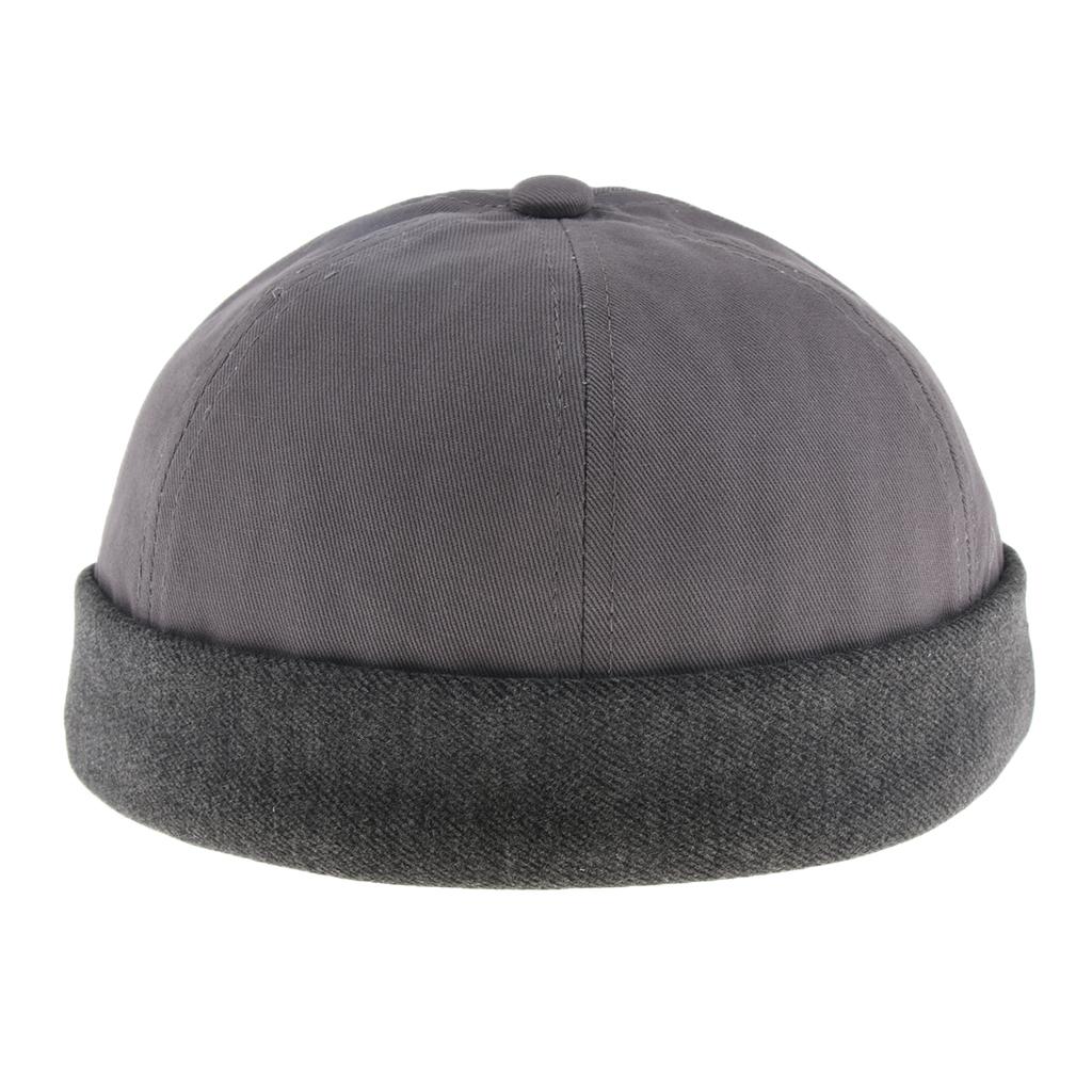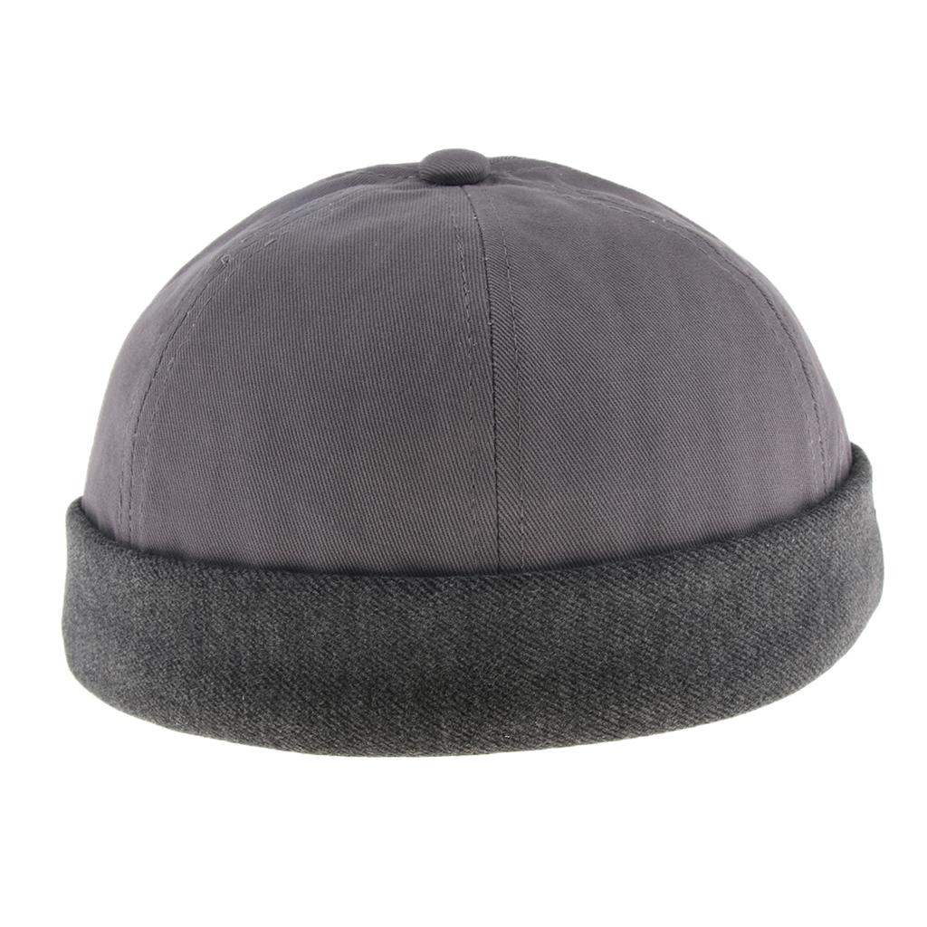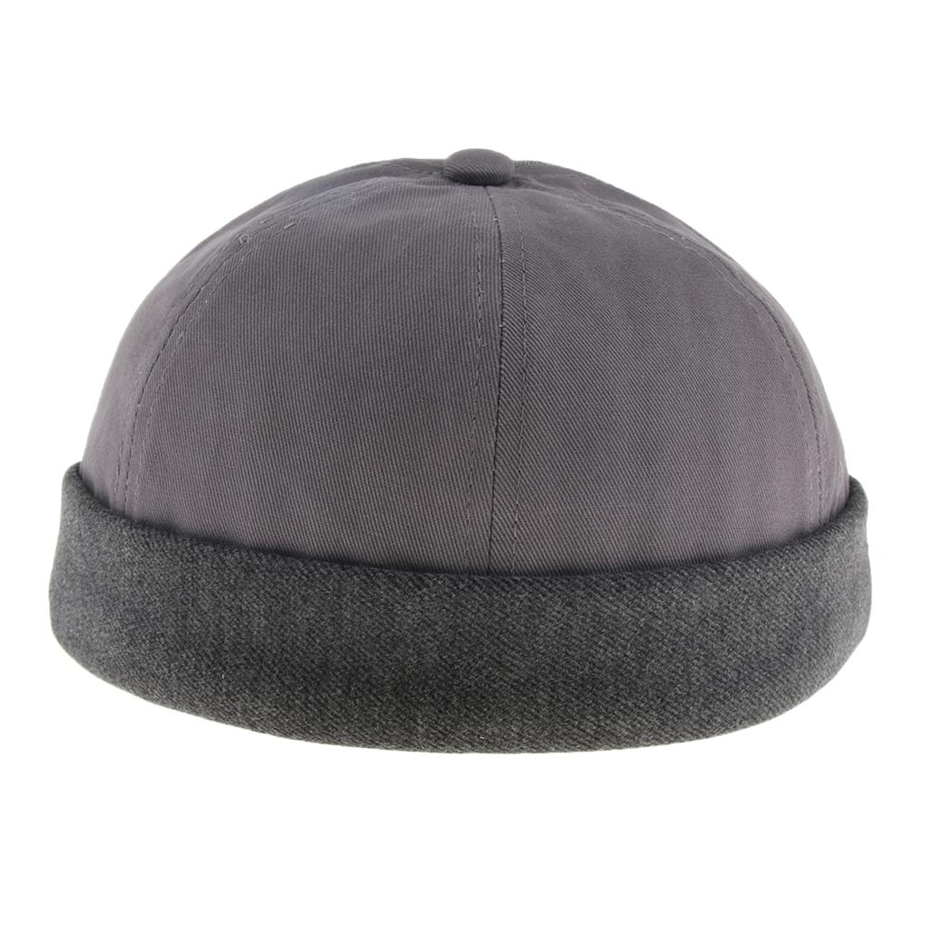 Unisex Biker Skullcap Sailor Cap Rolled Cuff Brimless Beanie Hat Dark gray