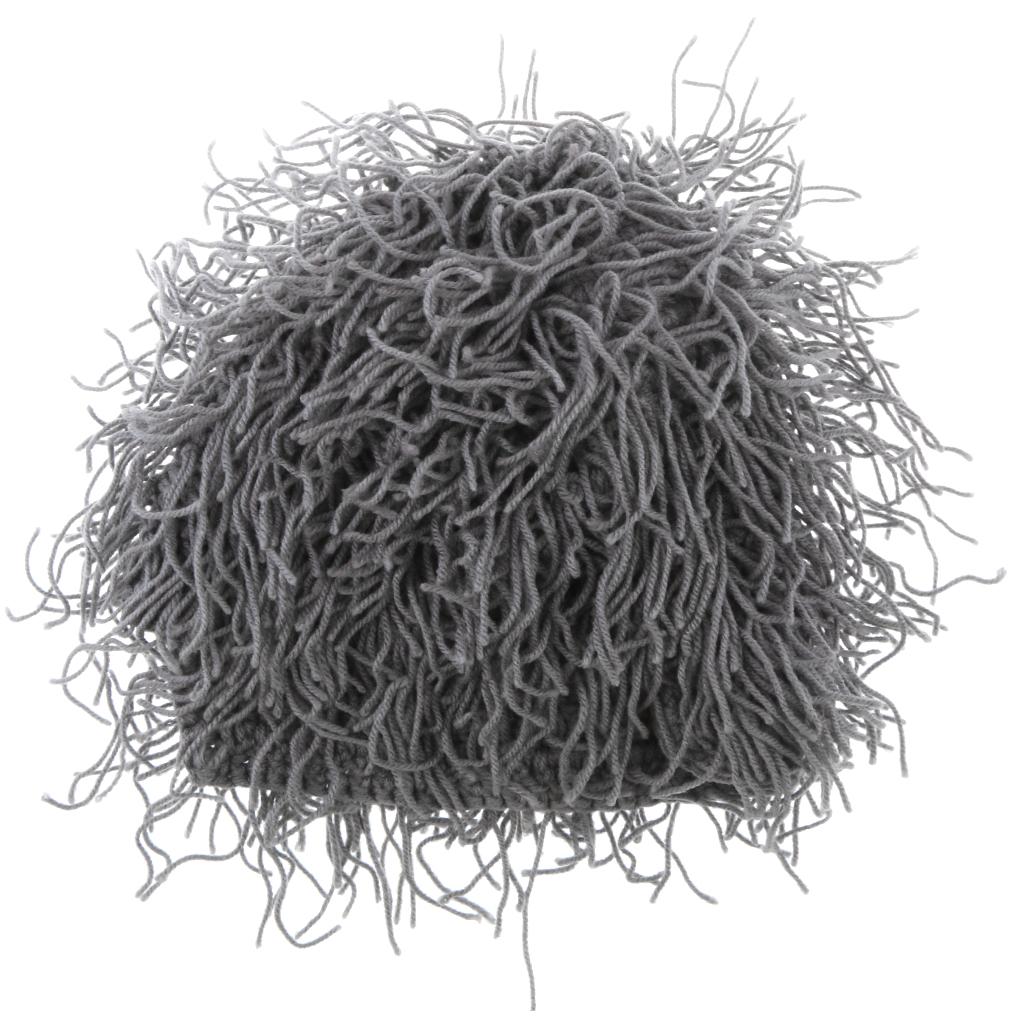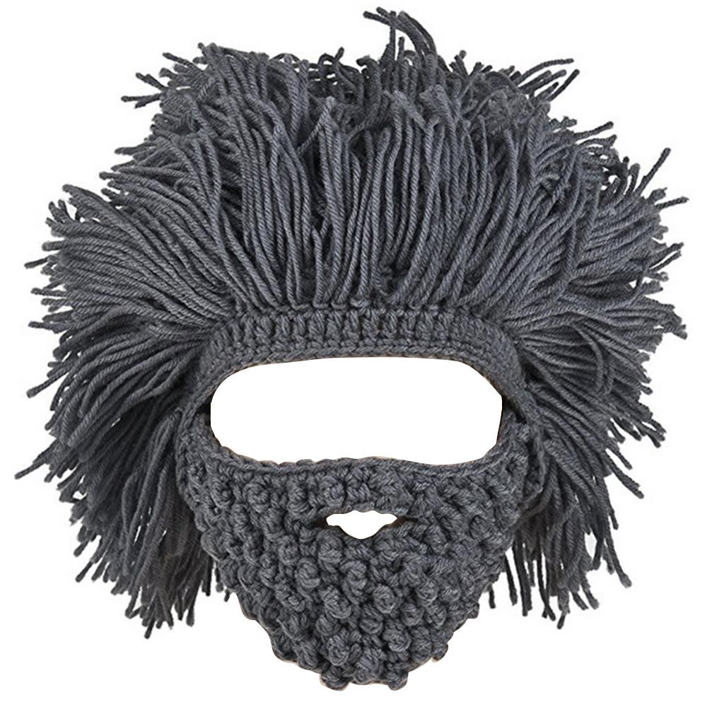 Unisex Knit Bearded Hat Handmade Wig Winter Warm Ski Mask Beanie Adult Gray