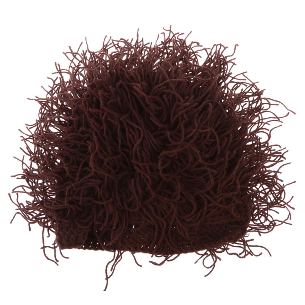 Unisex Knit Bearded Hat Handmade Wig Winter Warm Ski Mask Beanie Kids Brown