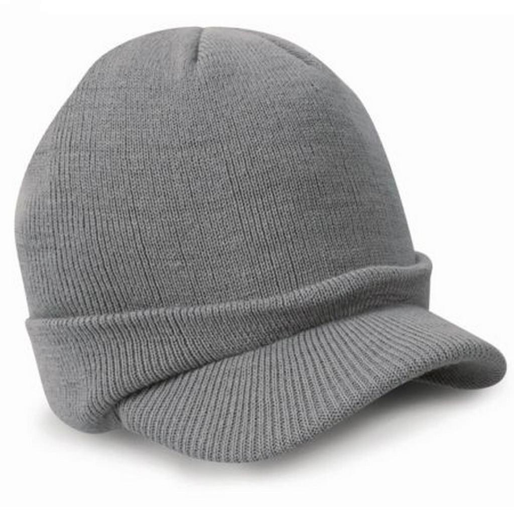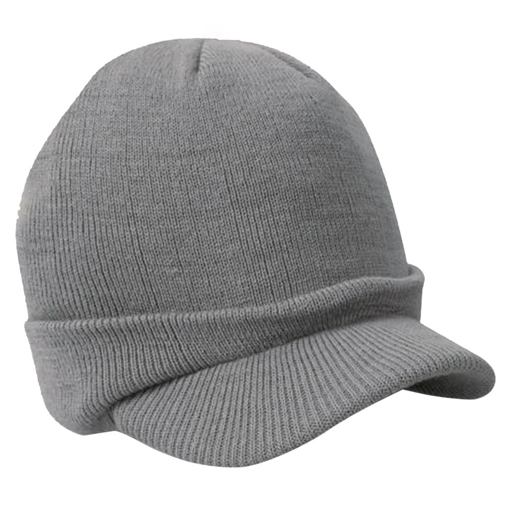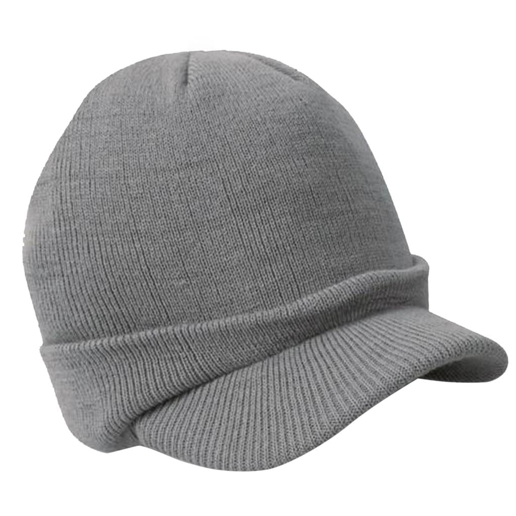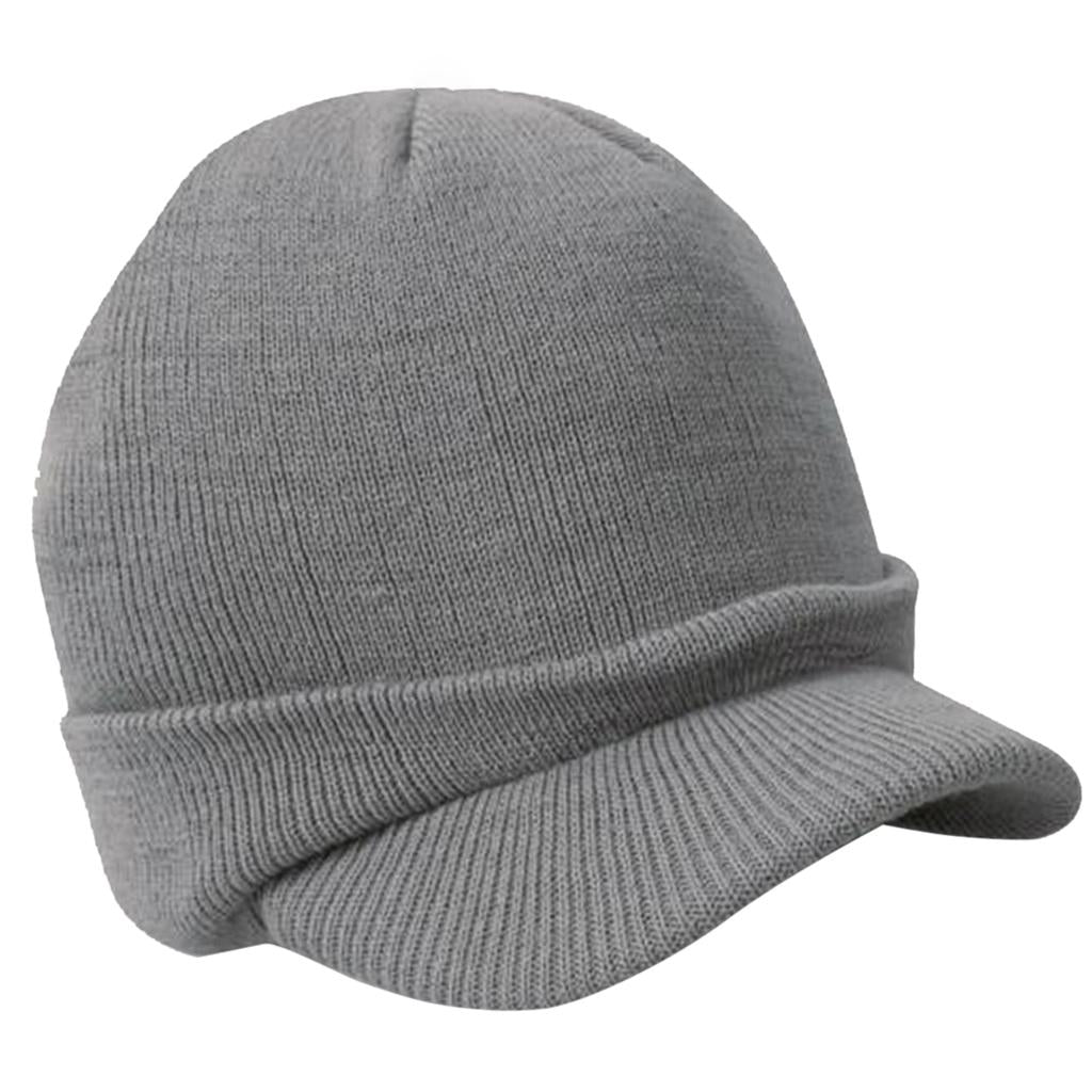 Unisex Mens Winter Warm Knitted Hat With Peak One size Light Gray