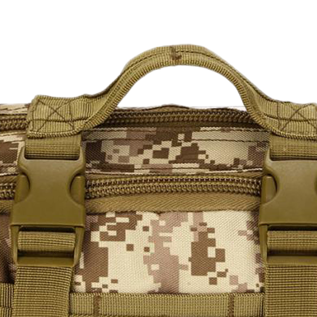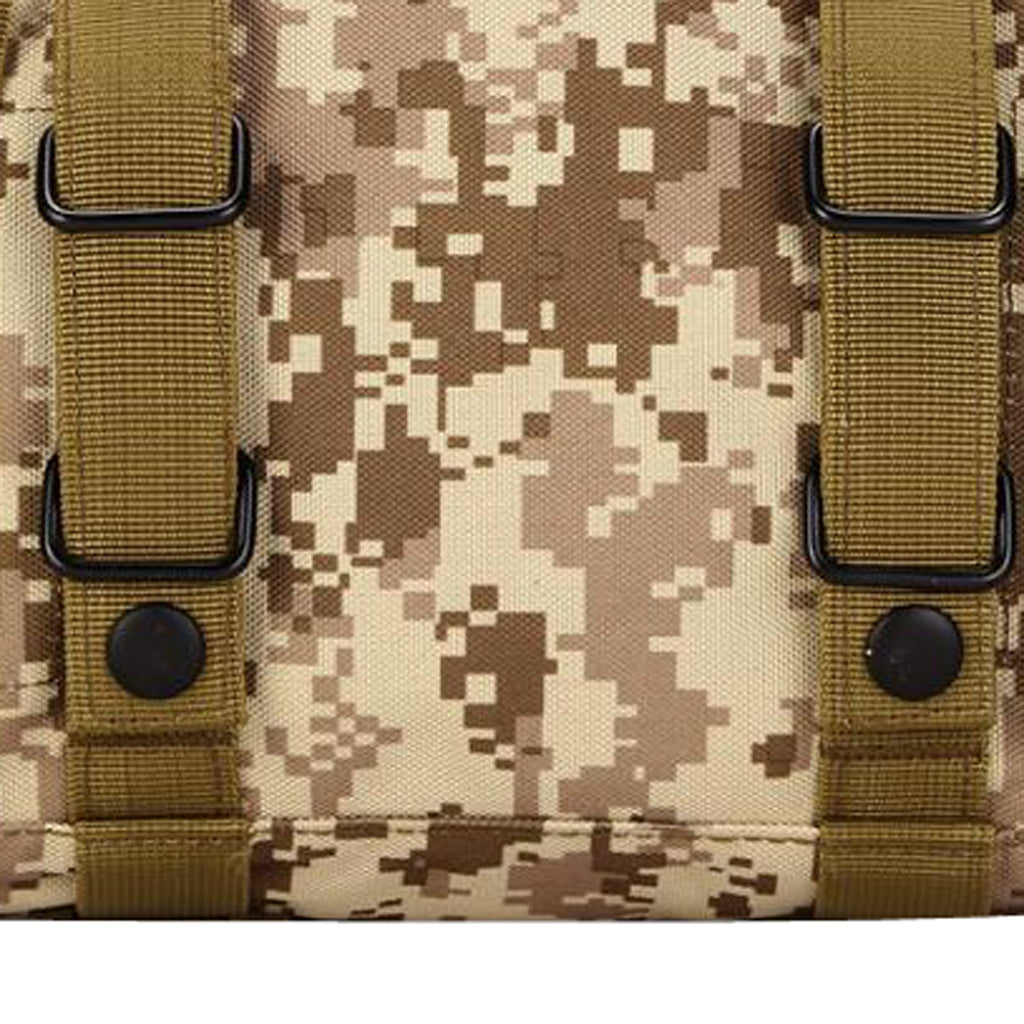 The outside pocket with one large compartment and two mess compartments, which convenient for organizing your things.