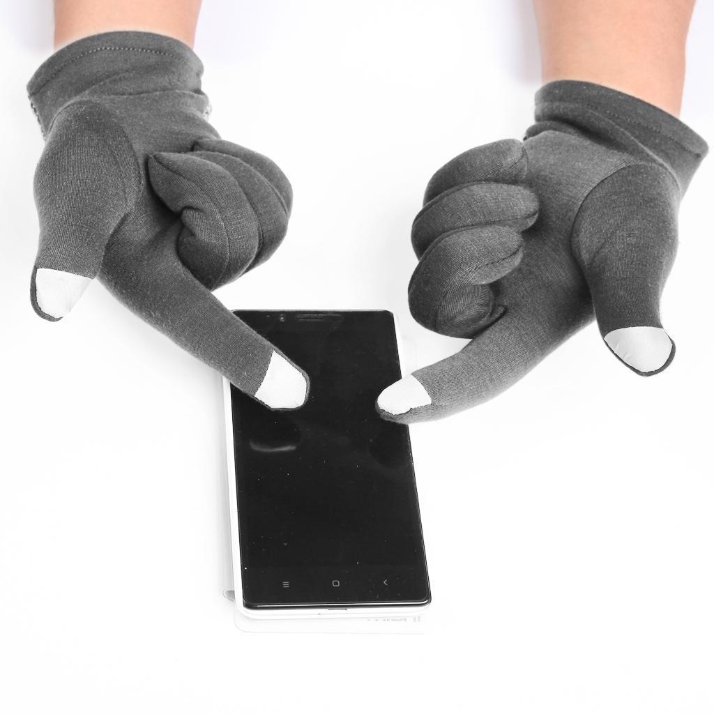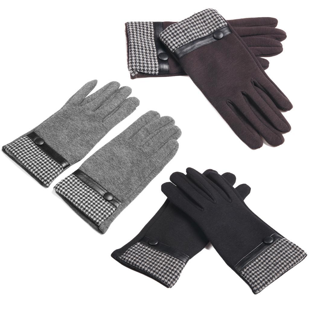 Winter Warm Mens Touch Screen Telefingers Gloves Grey w Swallow Gird Print