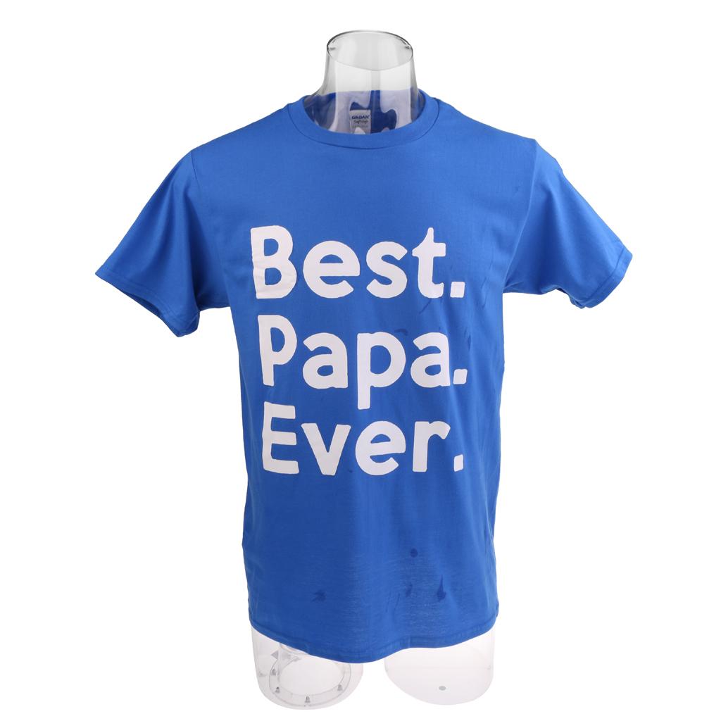 BEST PAPA EVER letters are printed on the front of the shirt. The back of the shirt will be blank.
