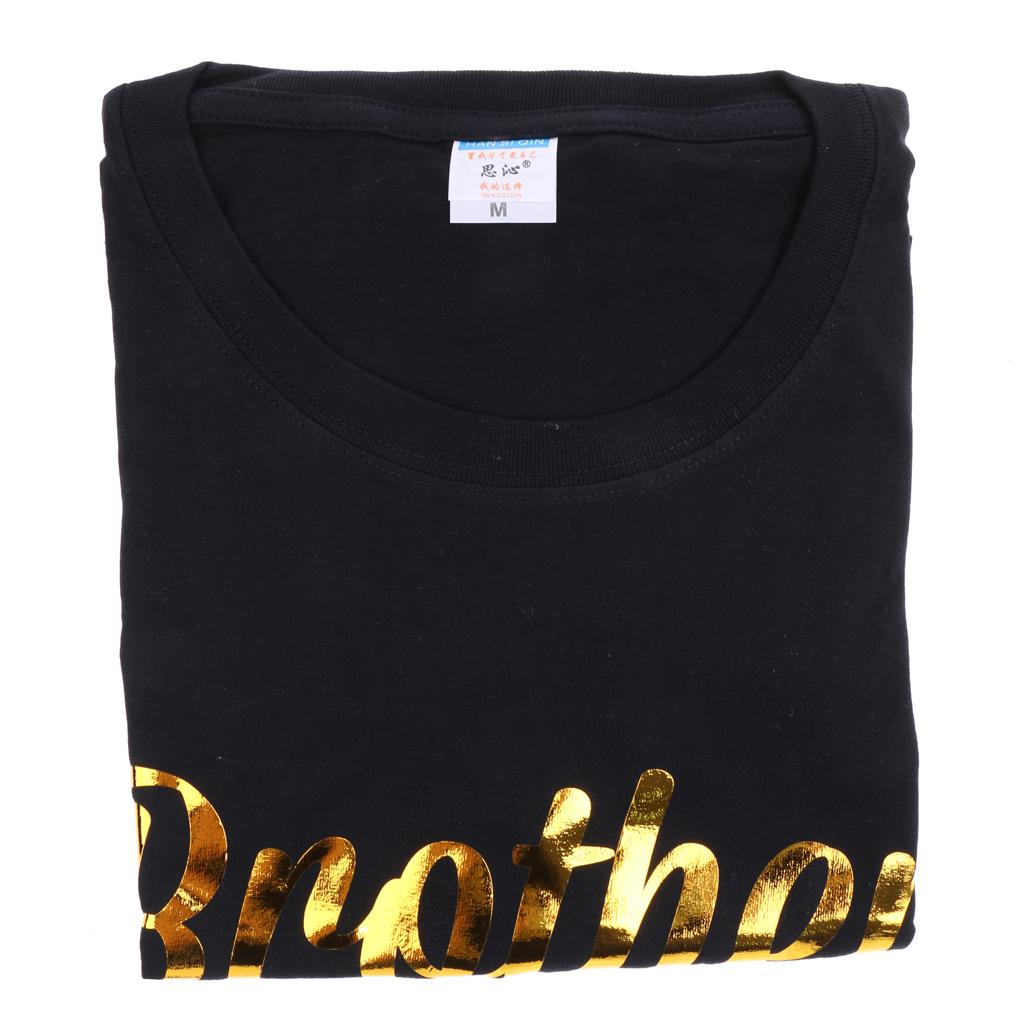 Brother of the Bride gold letters are printed on the front of the shirt. The back of the shirt will be blank.