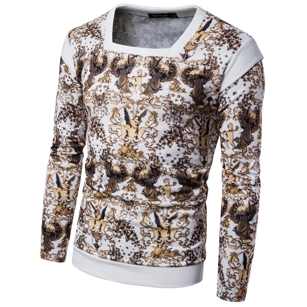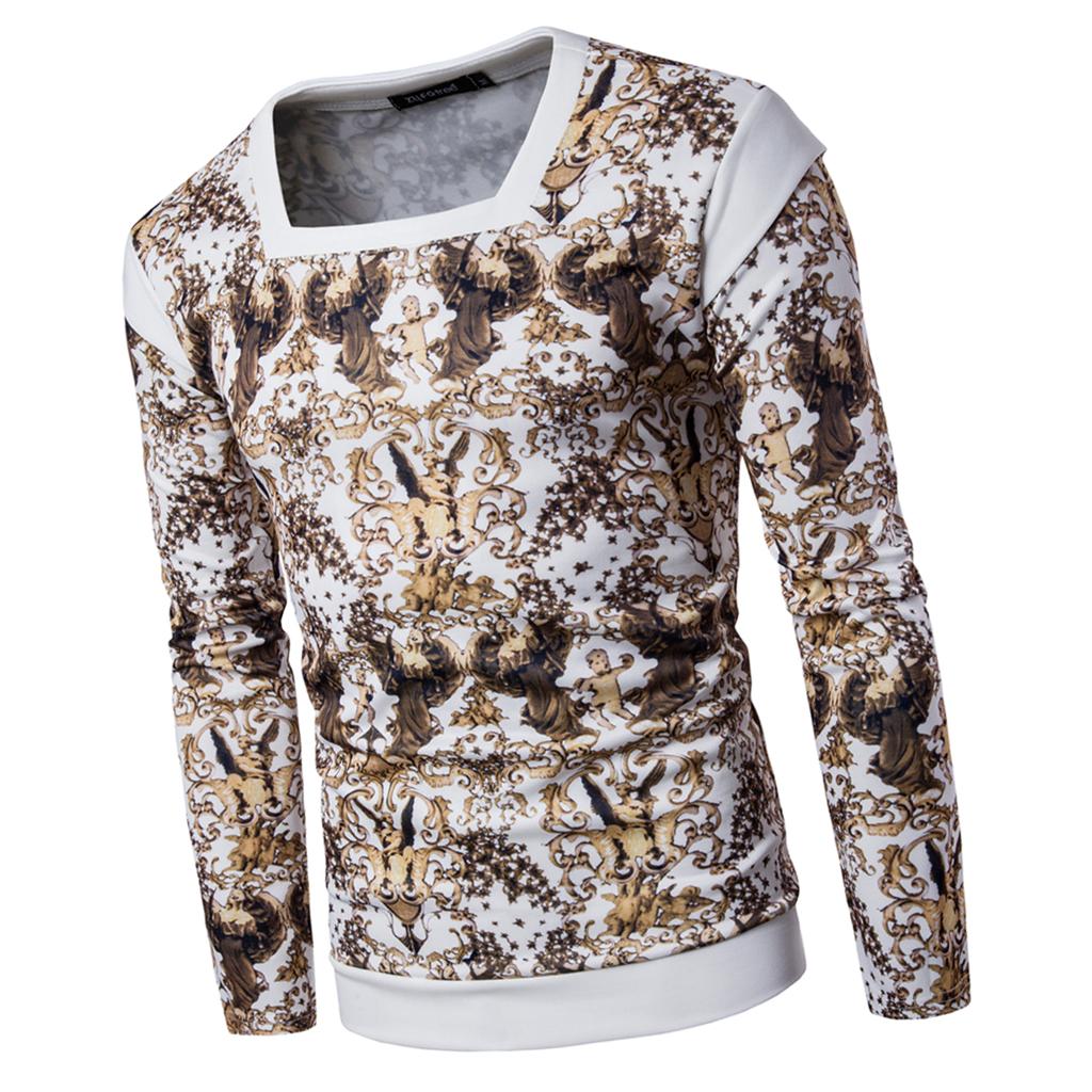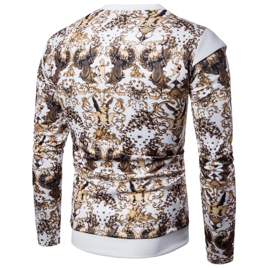 Fashion Mens Sweatshirt Crew Digital Printed Long Sleeve Pullovers White XXL
