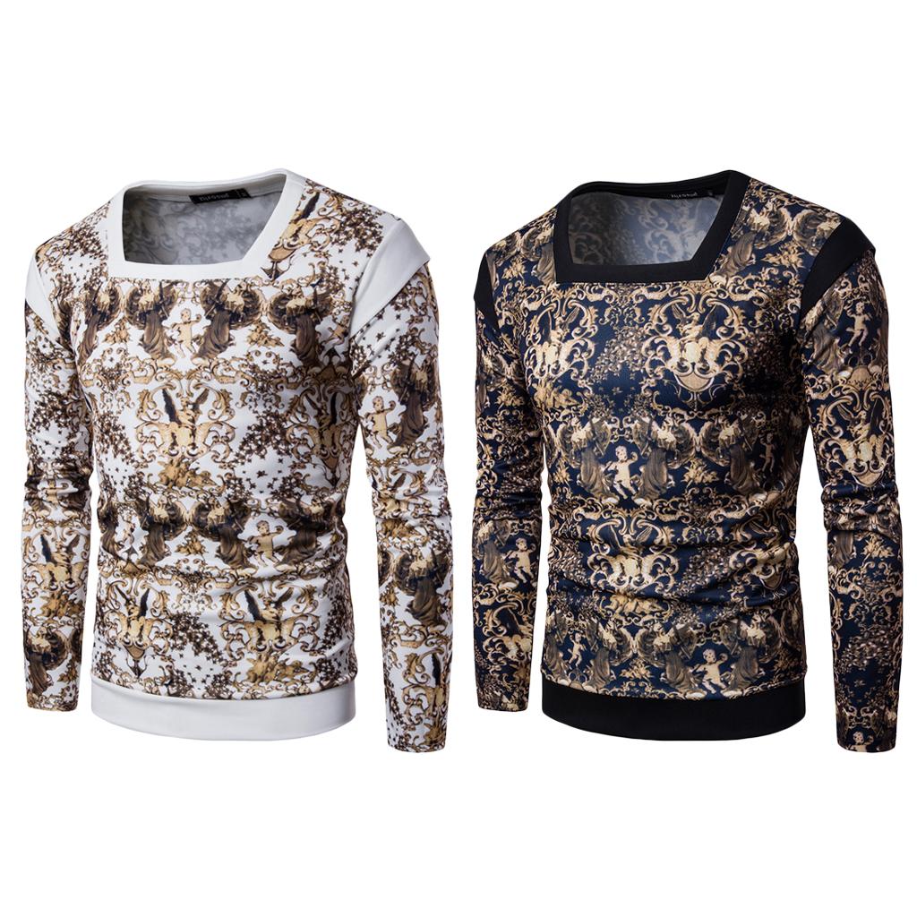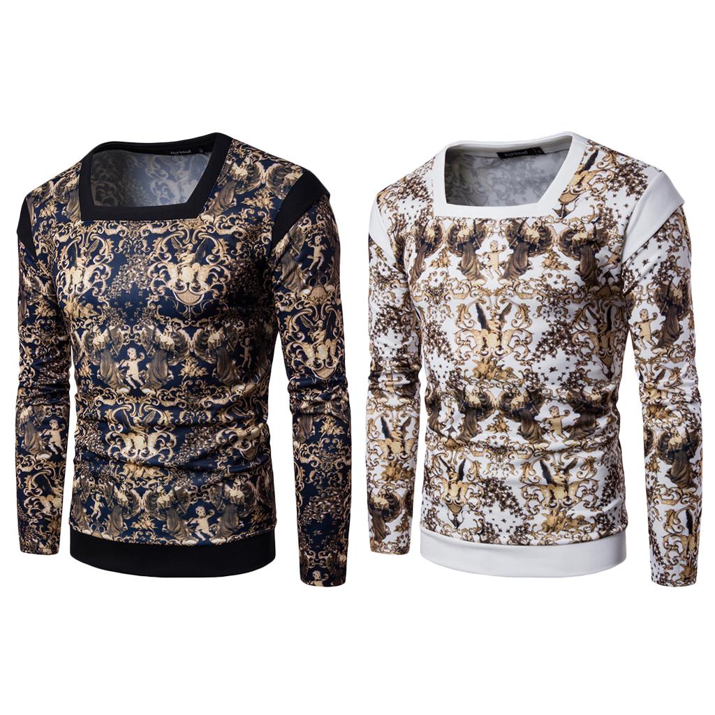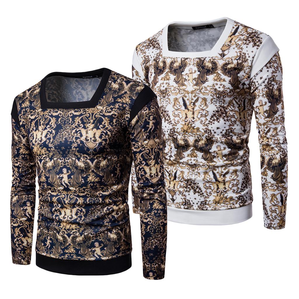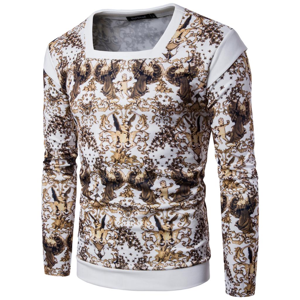 Fashion Mens Sweatshirt Crew Digital Printed Long Sleeve Pullovers White XXL