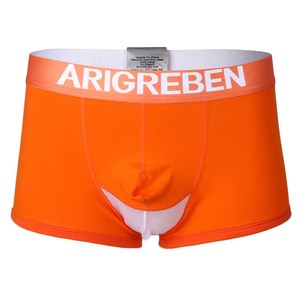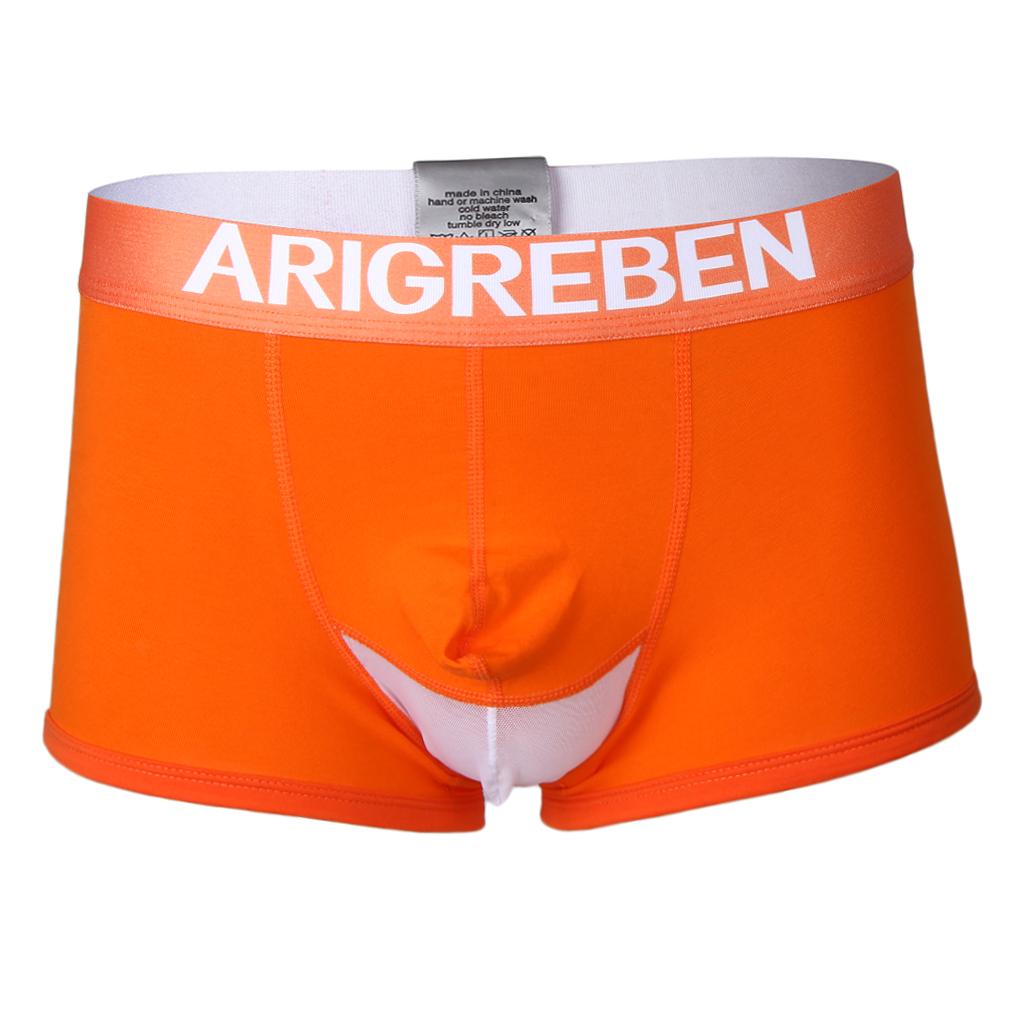 Men Briefs Mesh Bulge Pouch Boxers Underwear Shorts Male Panties 2XL Orange
