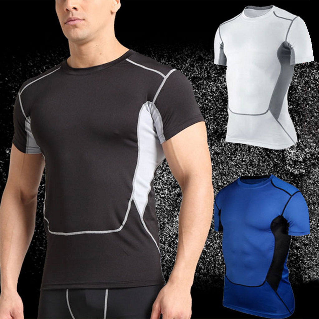 Men Gym Compression Fitness Sports Cycling Athletic T-Shirt Tops XL White
