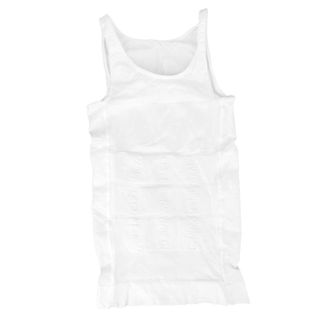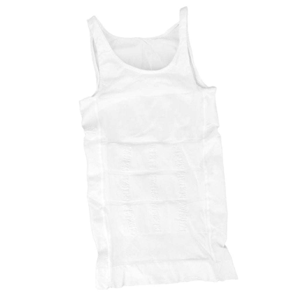 Men Nylon Breathable Elastic Compression Vest Fat Buner Calorie Off Shaper Shirt Corset White L