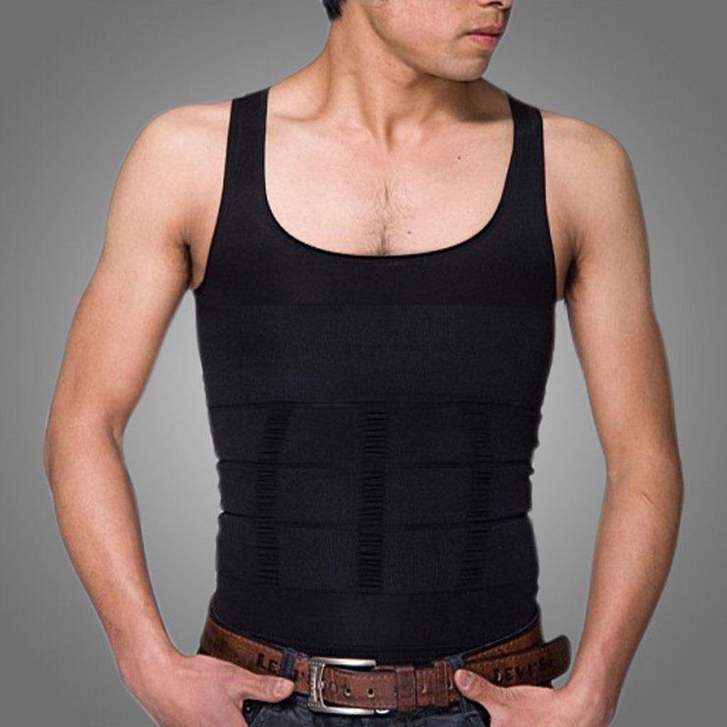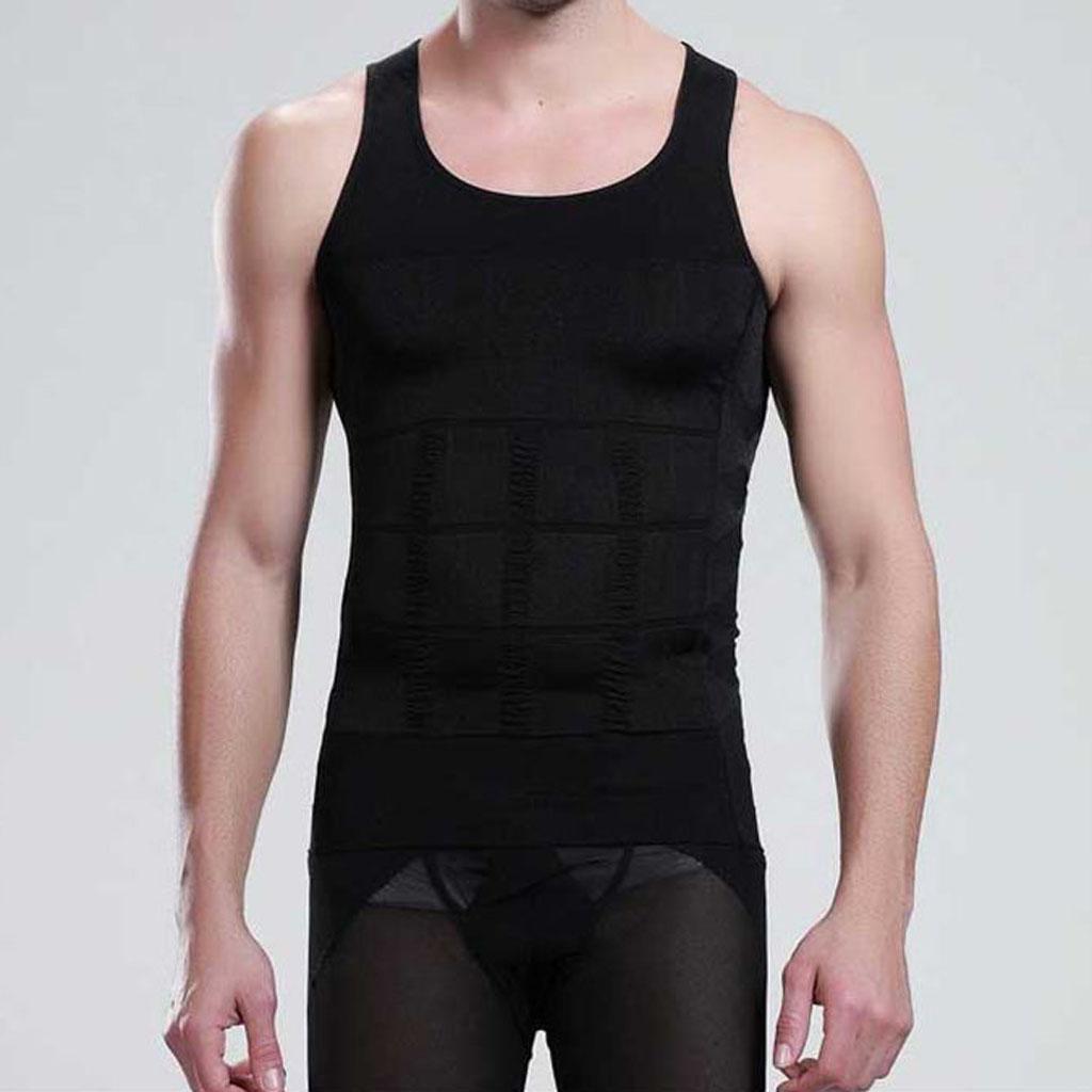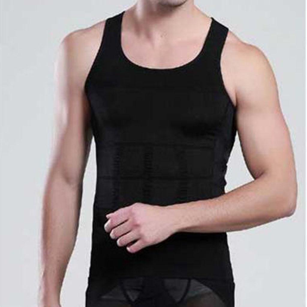 Men Nylon Breathable Elastic Compression Vest Fat Buner Calorie Off Shaper Shirt Corset XXL Black