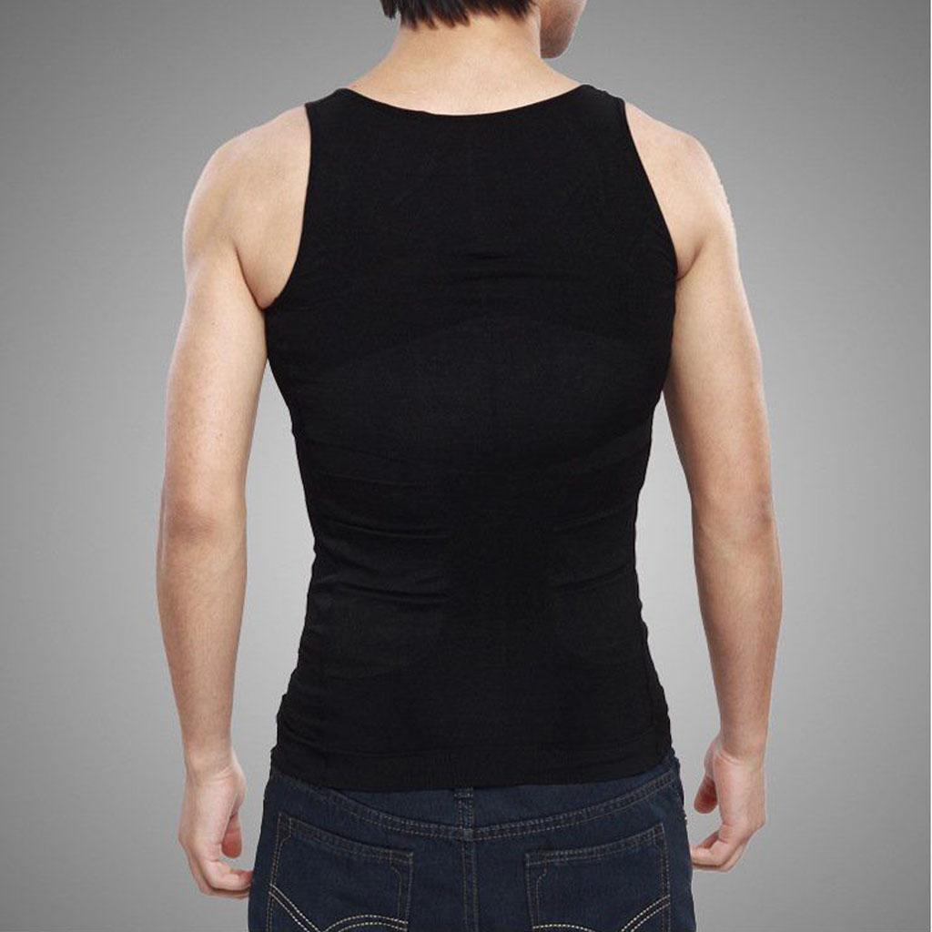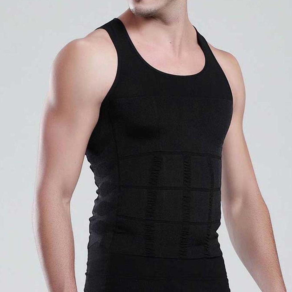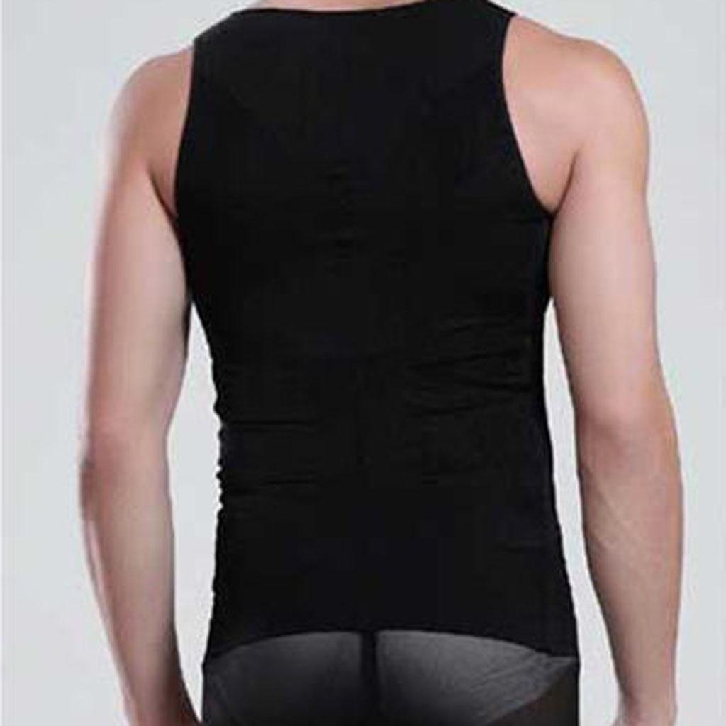 Men Nylon Breathable Elastic Compression Vest Fat Buner Calorie Off Shaper Shirt Corset XXL Black