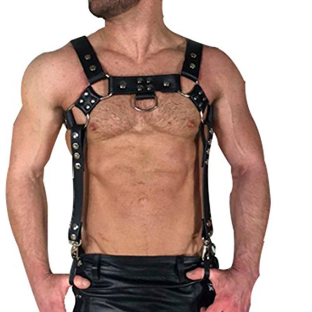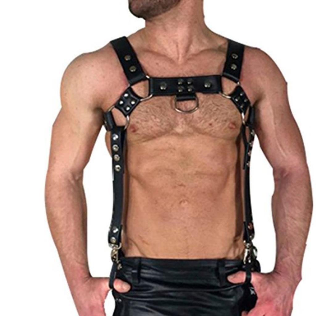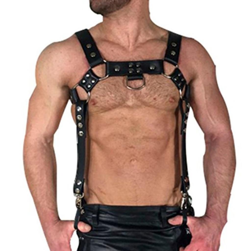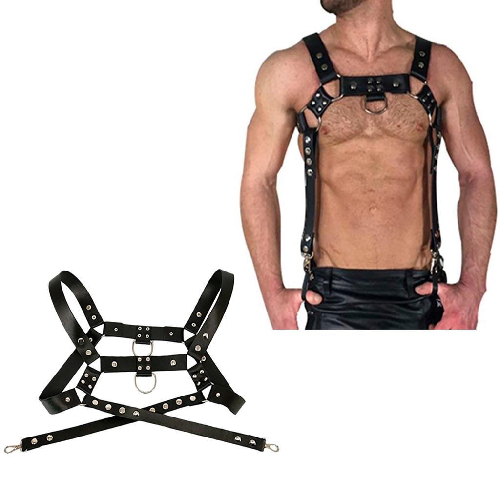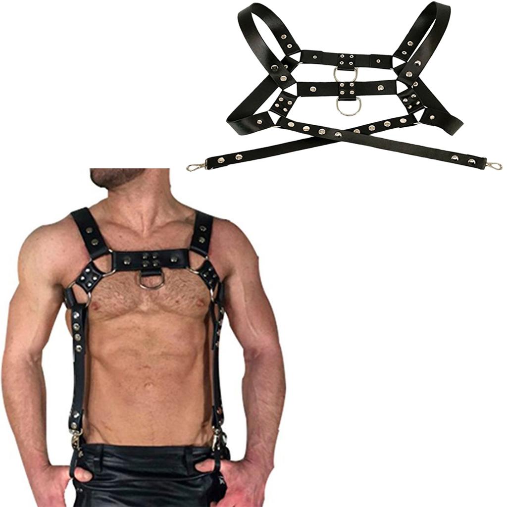 Men PU Leather Chest Body Half Harness Suspenders Belt Adjustable Buckle Strap Nightclub Clubwear