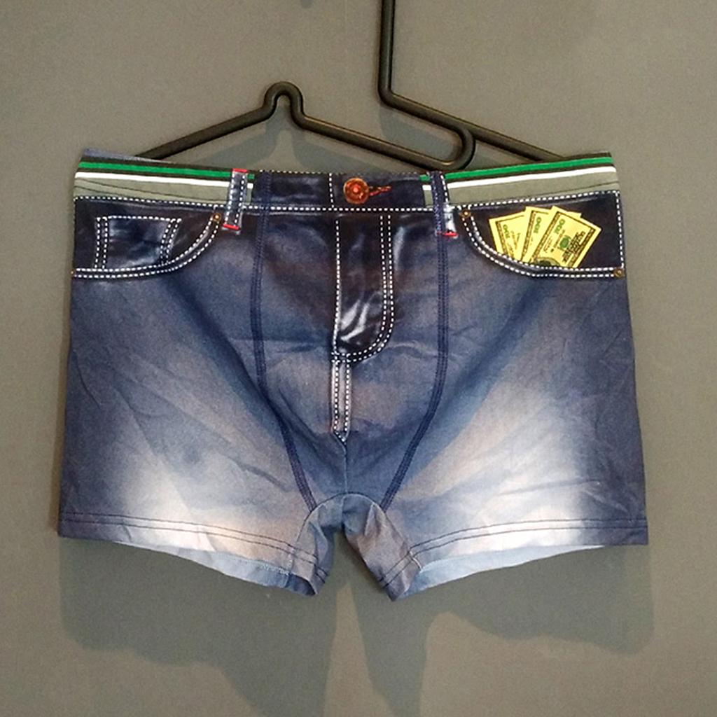 Men Cotton Spandex Shorts Fake Jean Boxer Briefs Sexy Underwear.