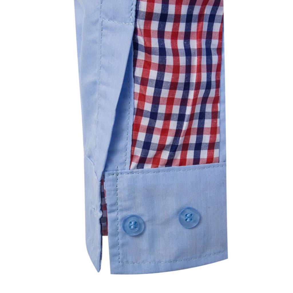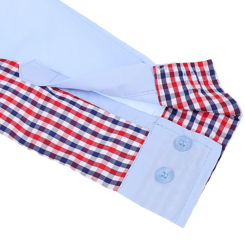 Features: button-down closure, long sleeves, plaid, turn down collar, convertible cuff