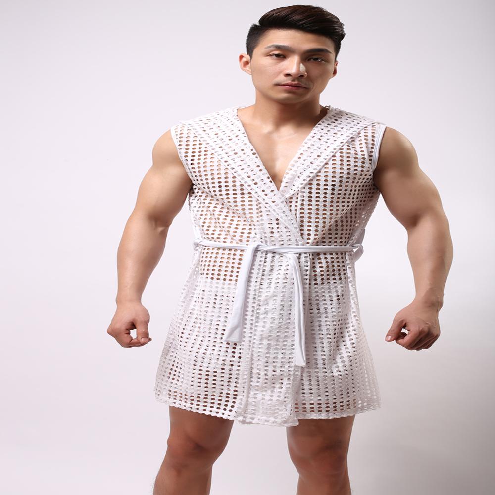 Sexy hooded hollow out belted robe, great for bath, spa, sleepwear, nightwear, special night wear etc