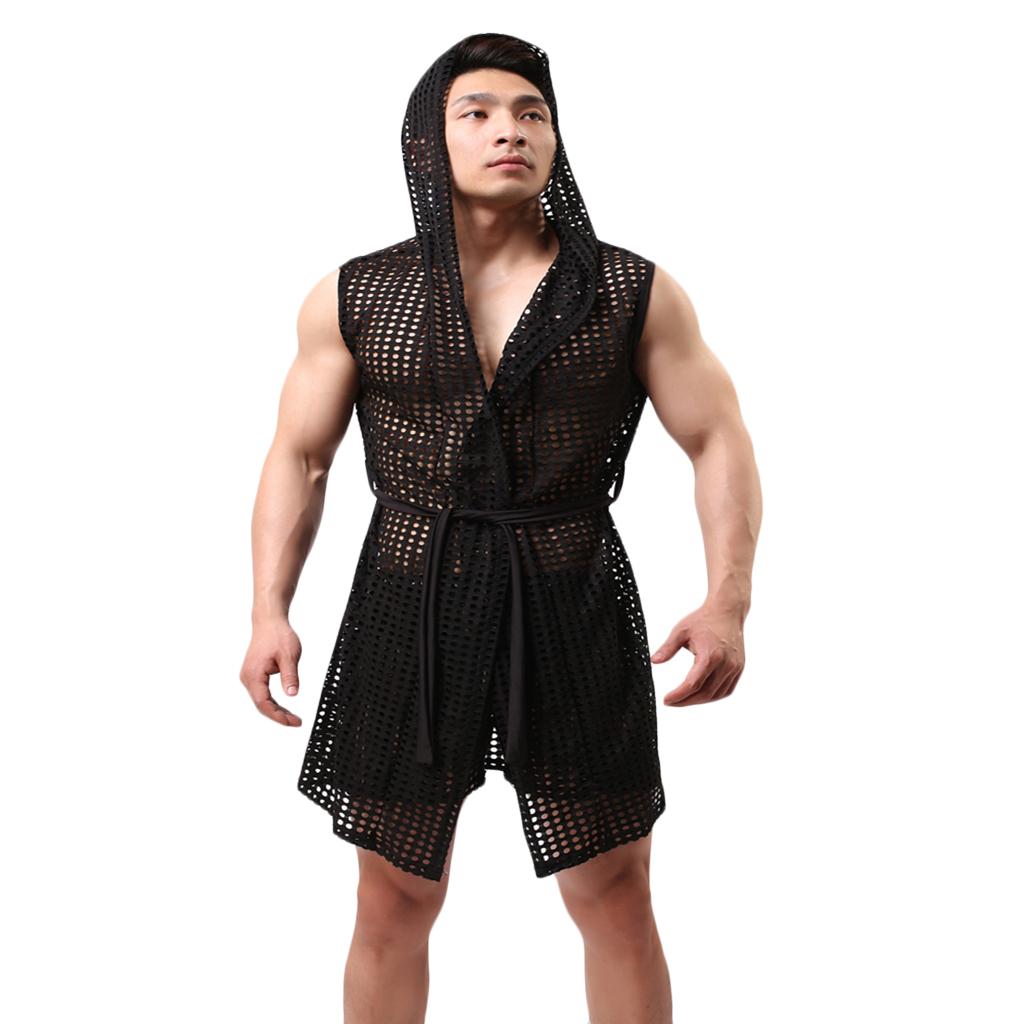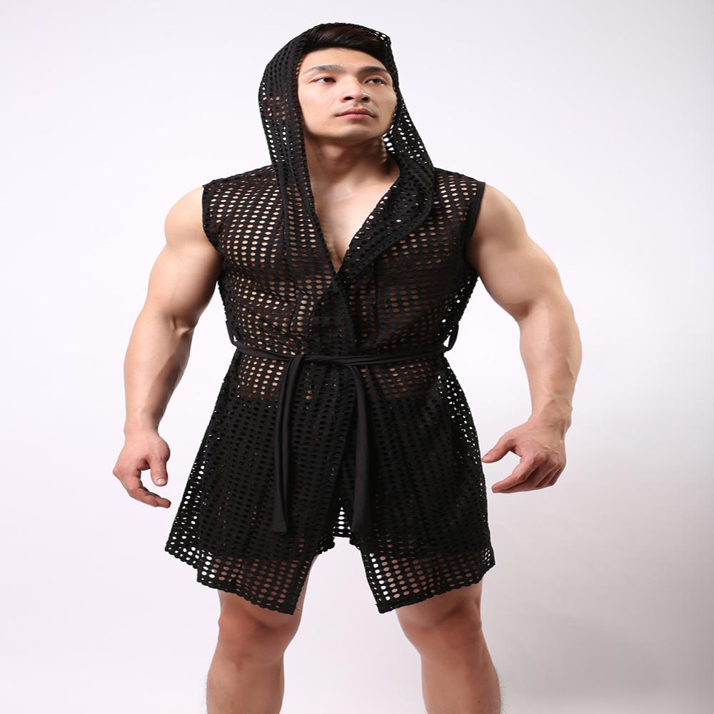 Sexy hooded hollow out belted robe, great for bath, spa, sleepwear, nightwear, special night wear etc