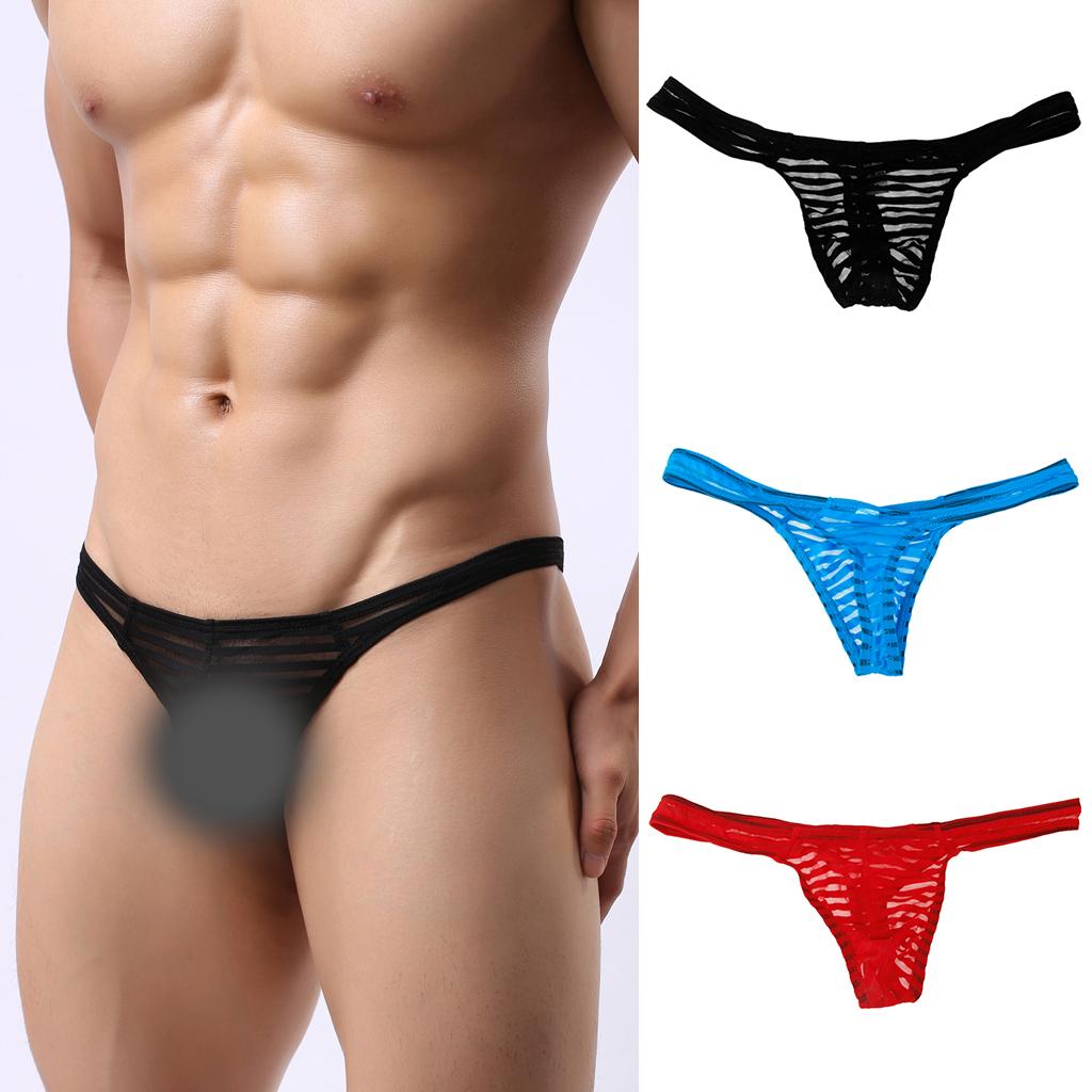 Men's Sexy Sheer Mesh G-string Underwear Thong T-back Briefs Pouch M Red