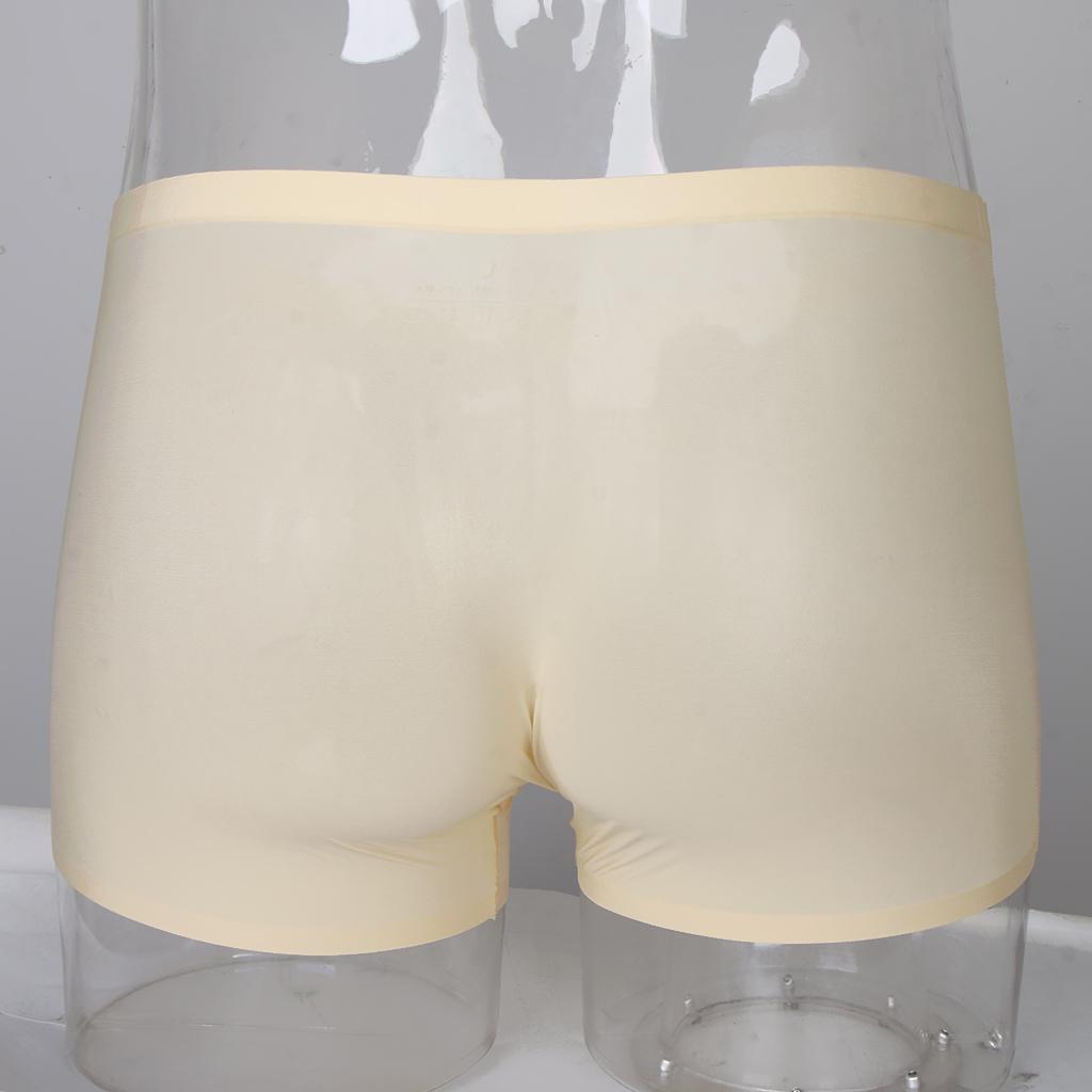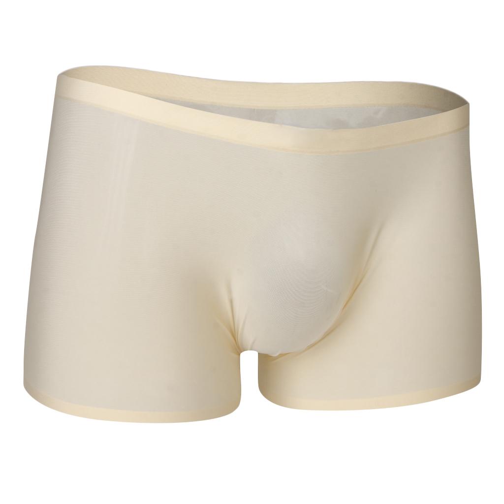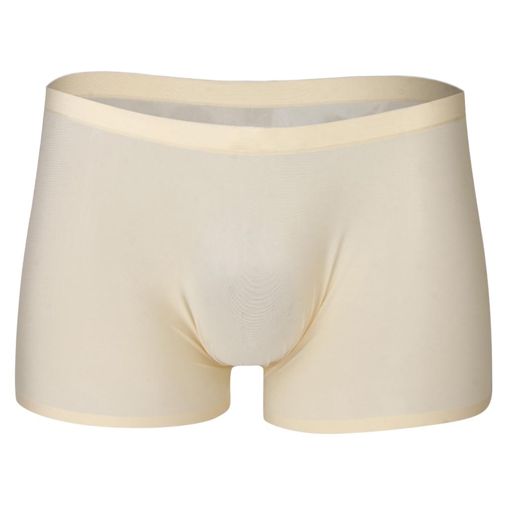 Mens Silk Underwear Sexy Seamless Boxer Briefs Short Leg L Skin Color