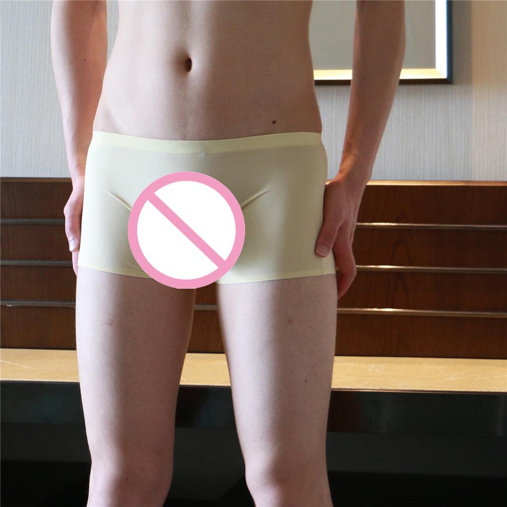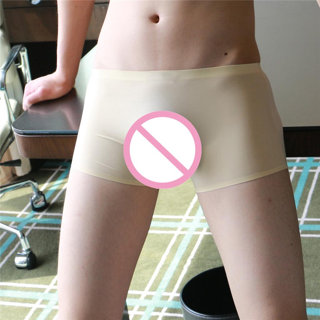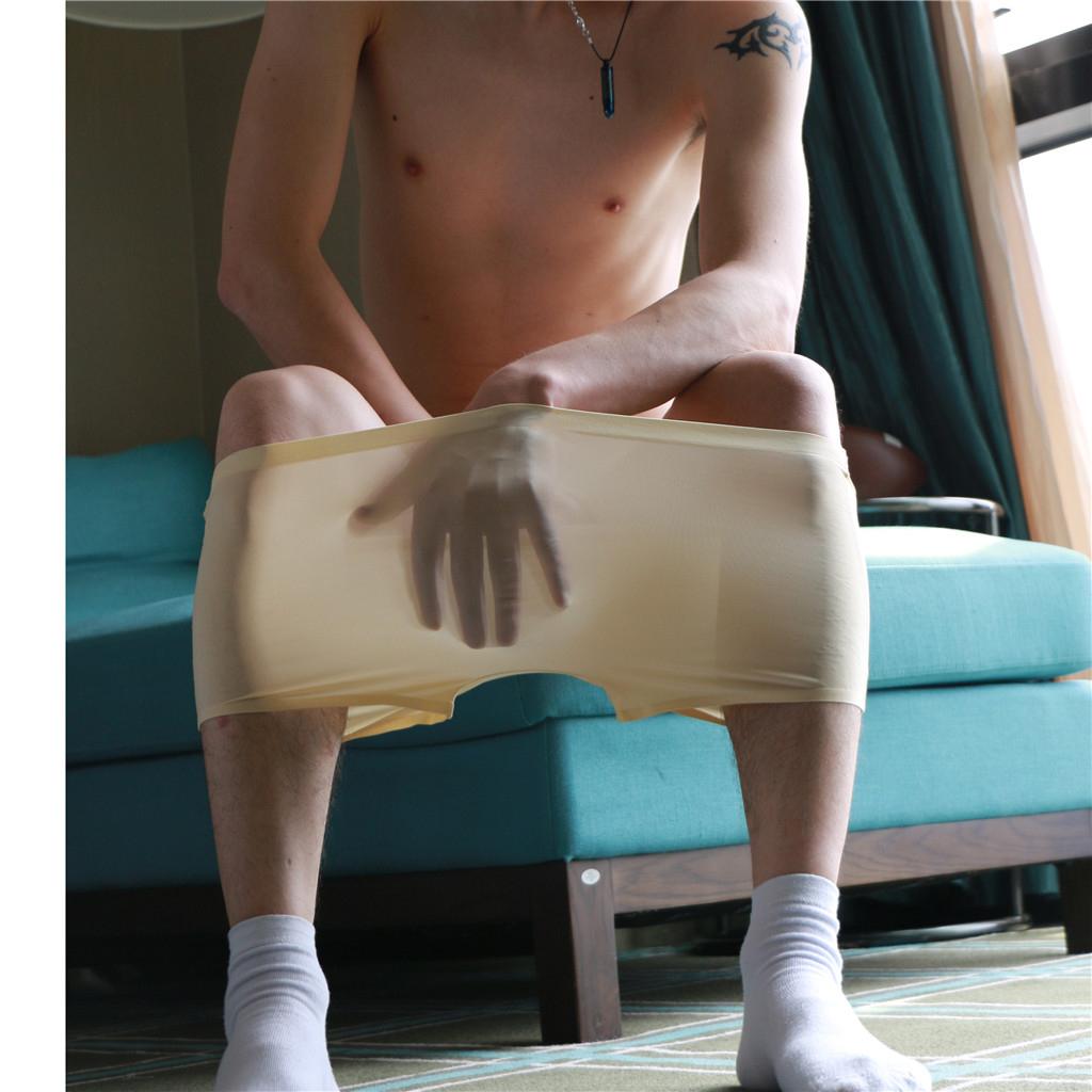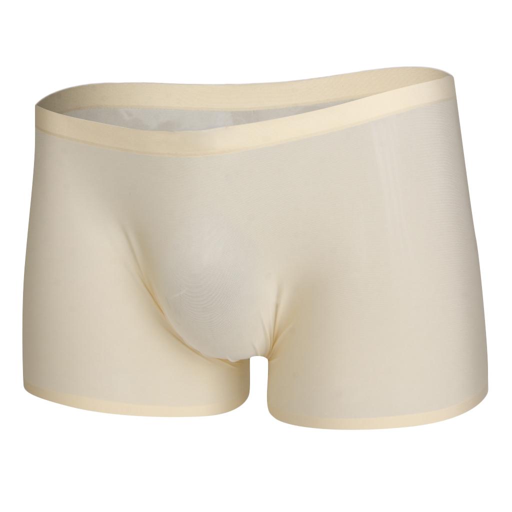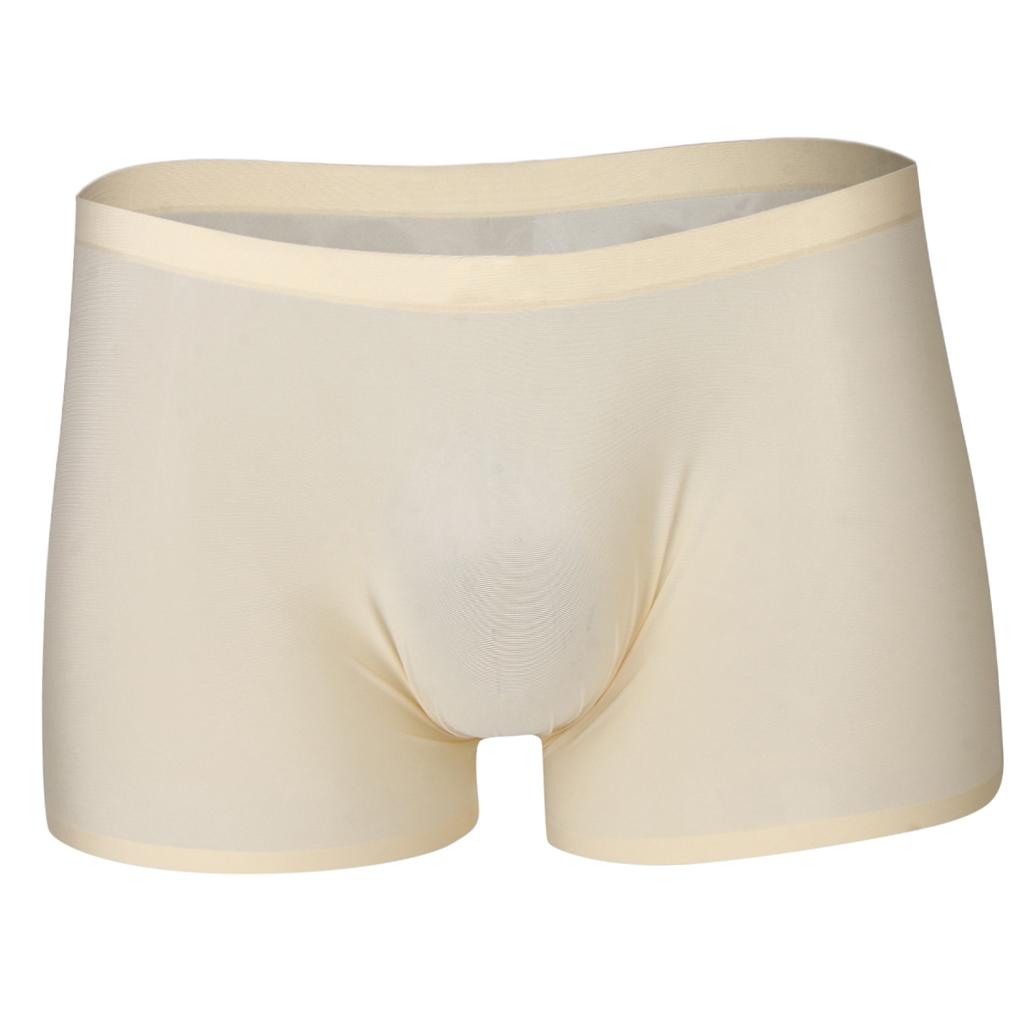 Mens Silk Underwear Sexy Seamless Boxer Briefs Short Leg M Skin Color