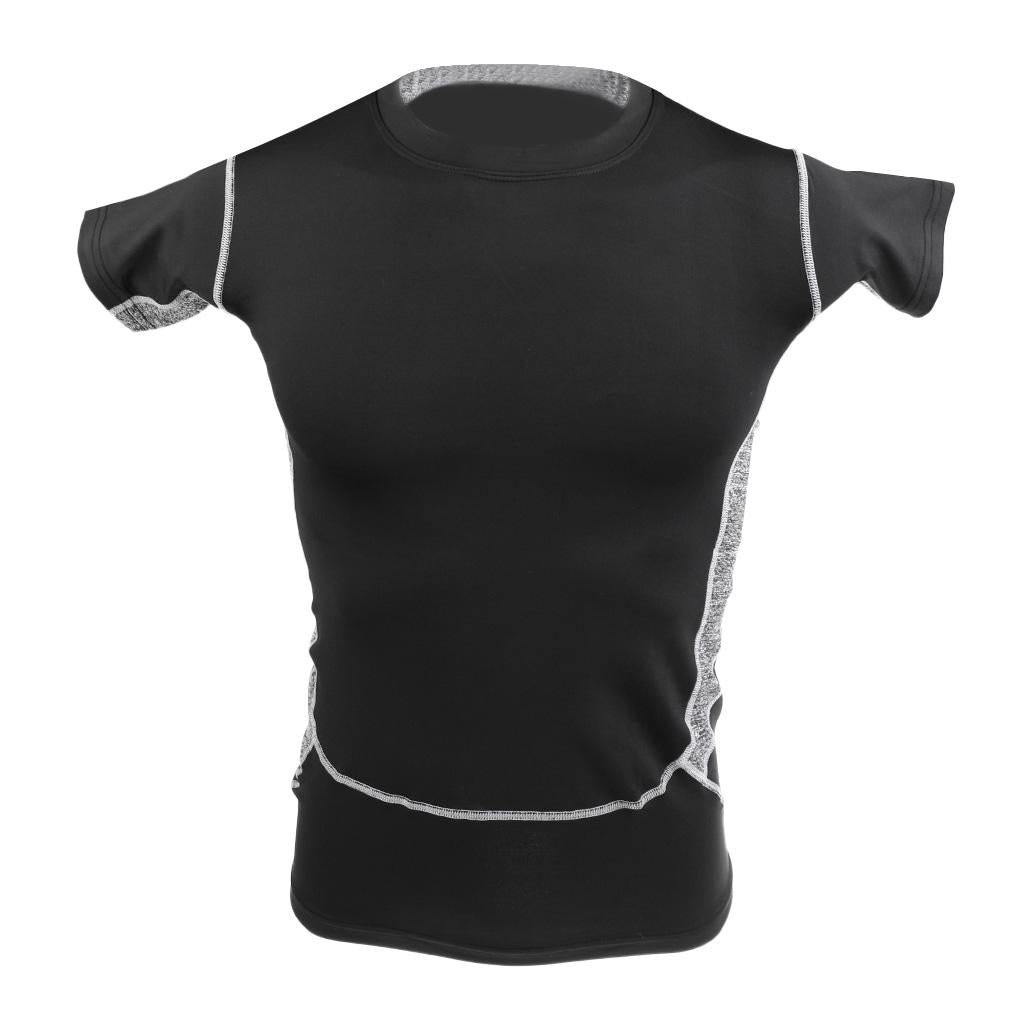 Mens Sports Training Fitness Compression Short Sleeves Fitness Bodybuilding Quick Dry Belly Body Shaping T-Shirt Black XL