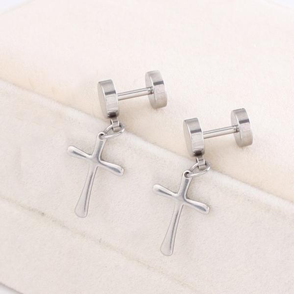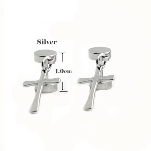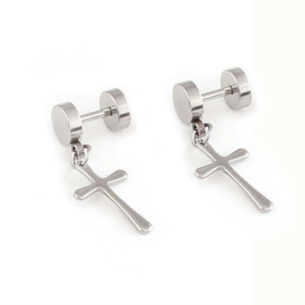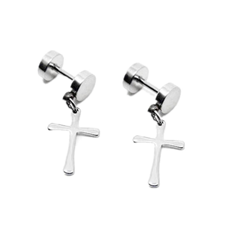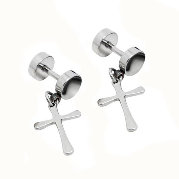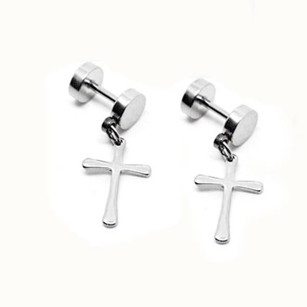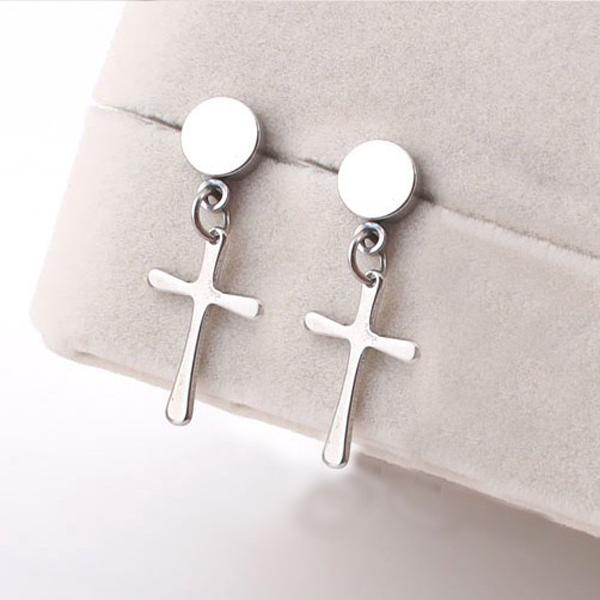 1Pair 316L stainless Steel Cross Dangle Pendant Earring Ear Studs - Silver