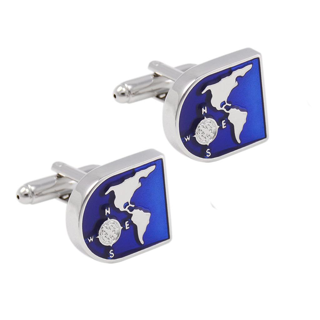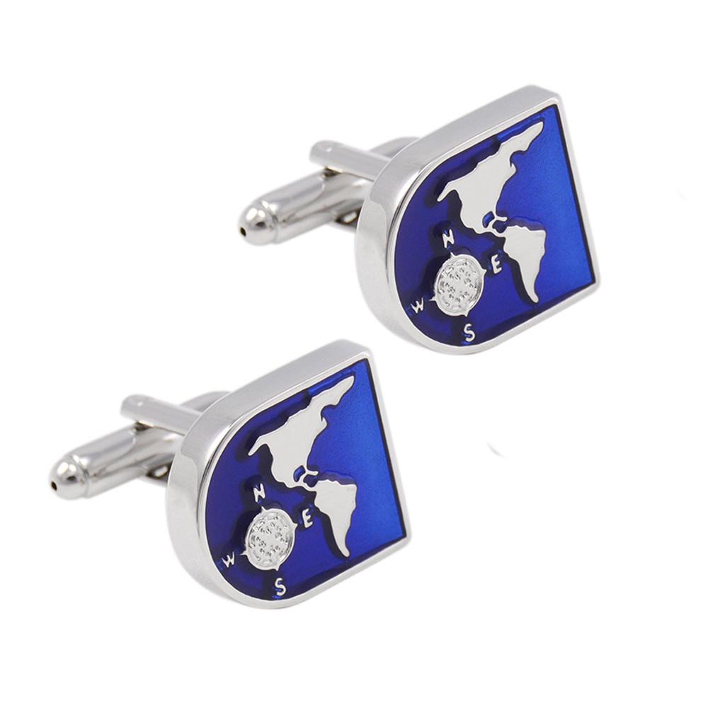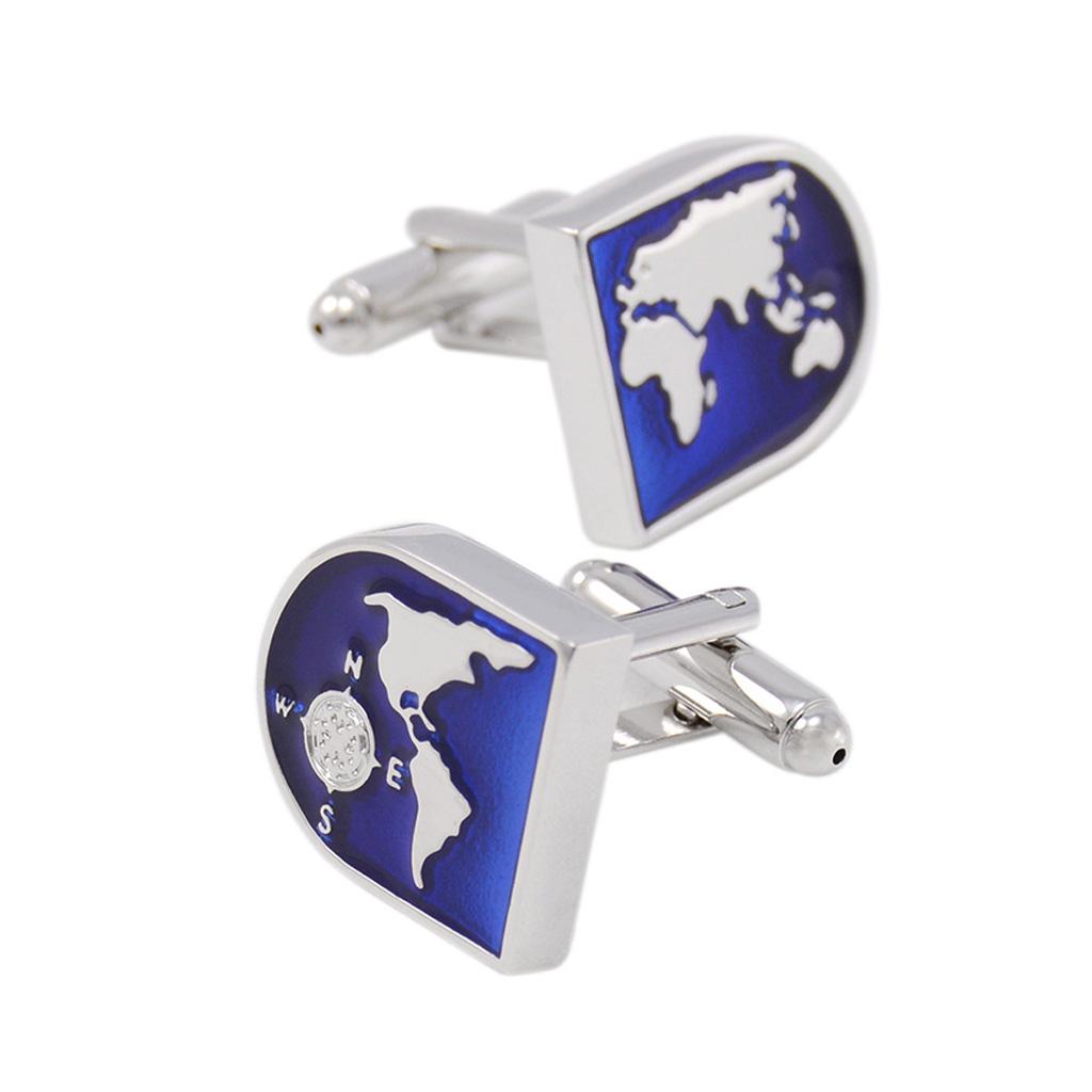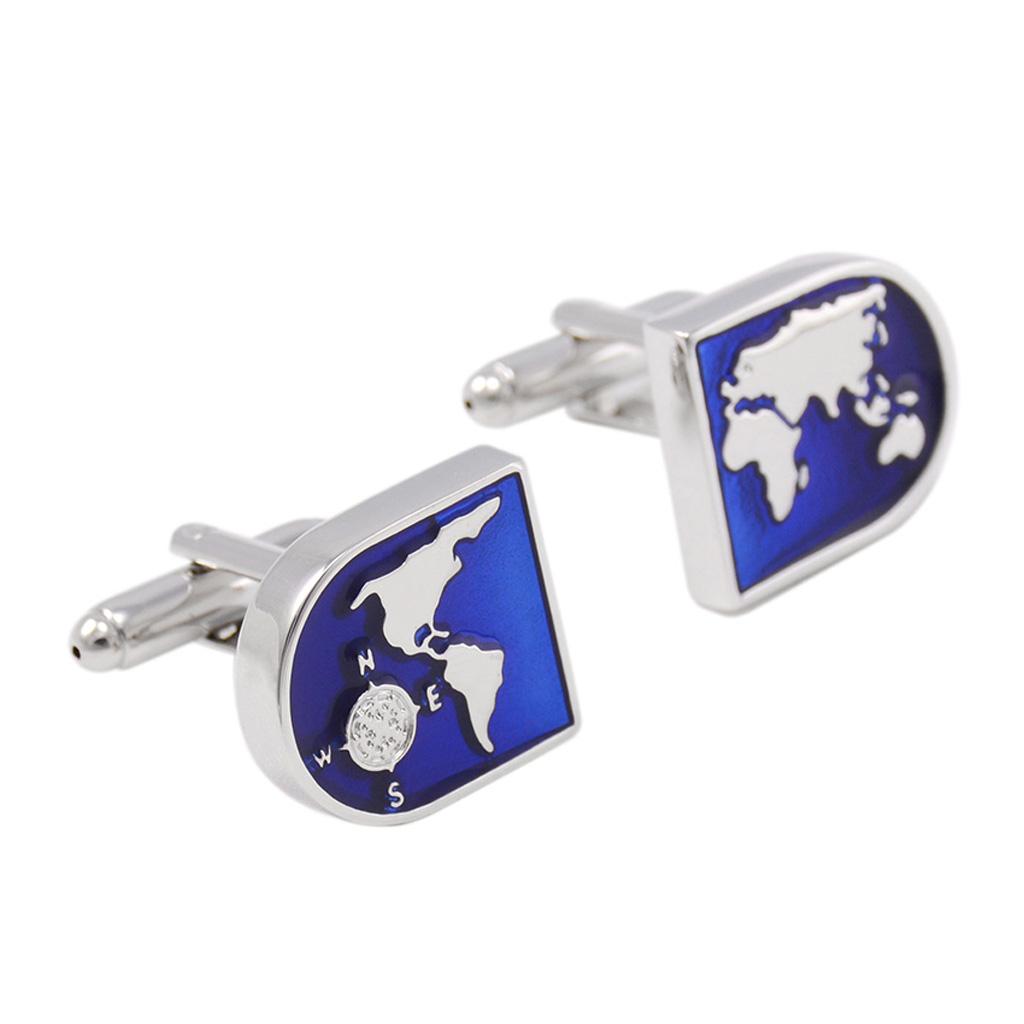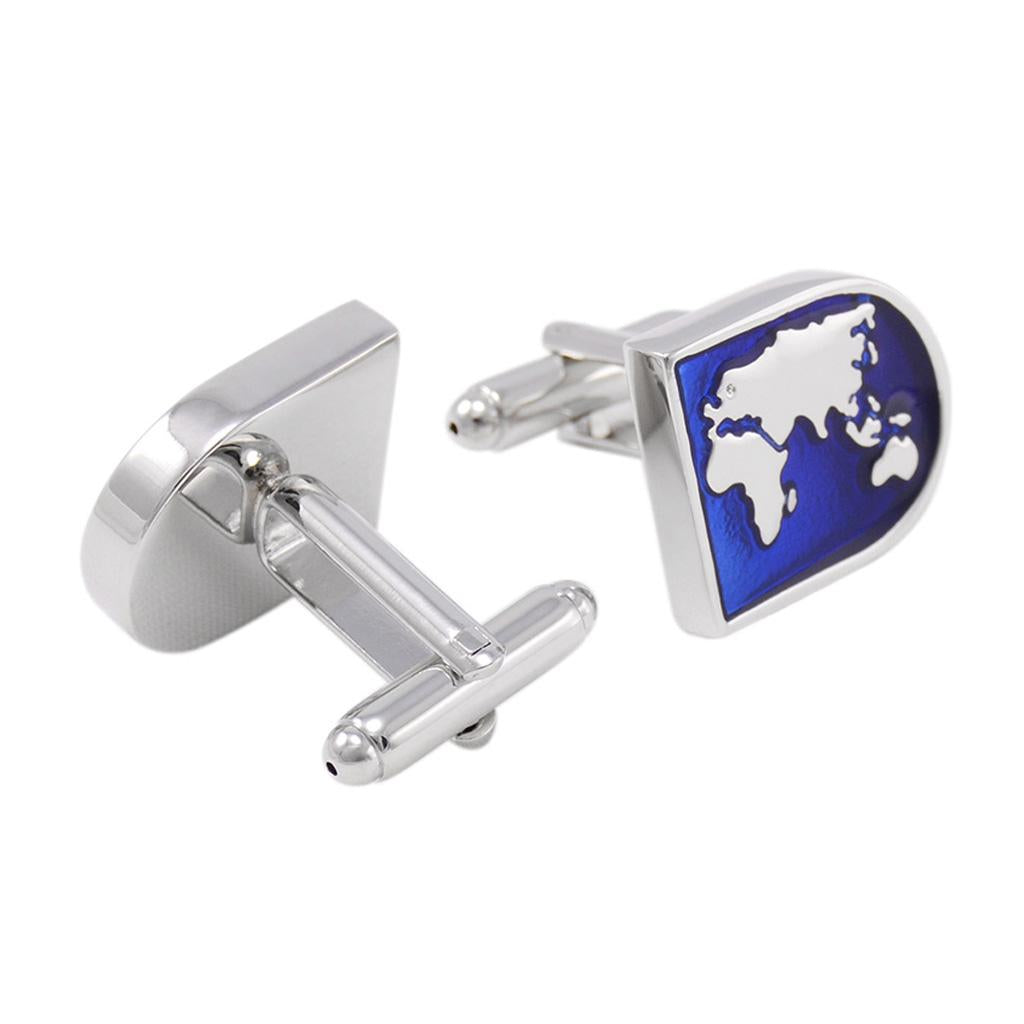 Blue World Map Time Zone Cuff Link Wedding Party Xms Gift Mens Cufflinks