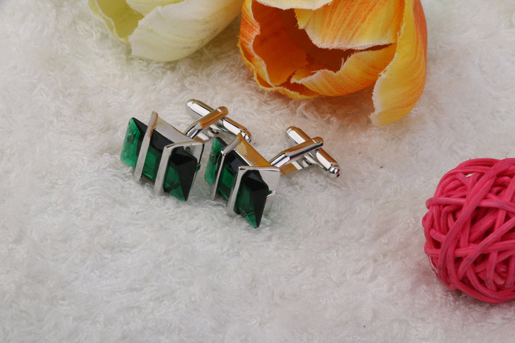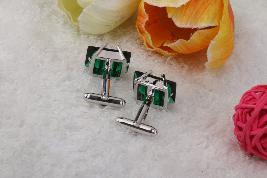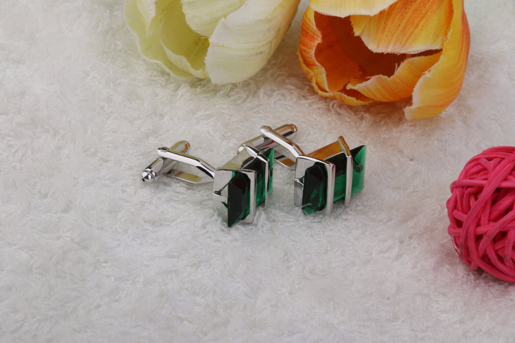 Copper Green Crystal Cufflinks Cuff Links Jewelry Birthday Favor Gift 1Pair