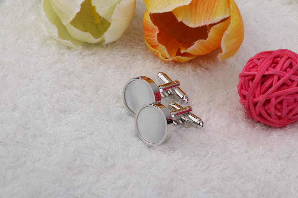 Copper Round Shell Cufflinks Cuff Links Jewelry Birthday Favor Gift 1Pair