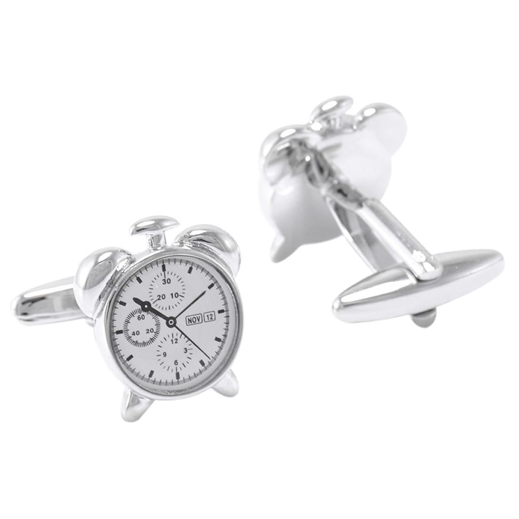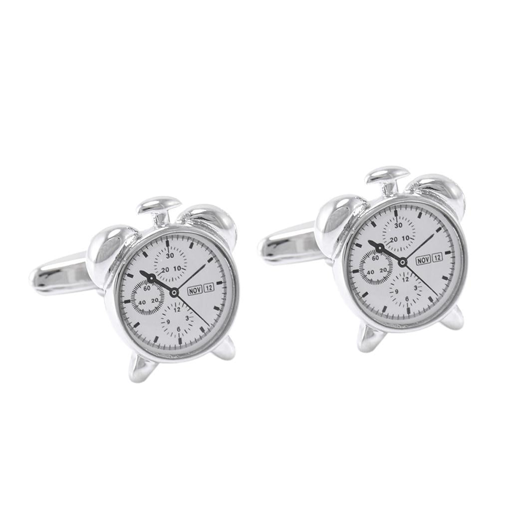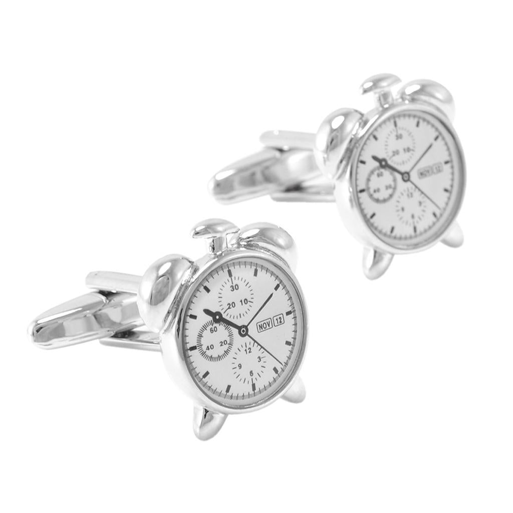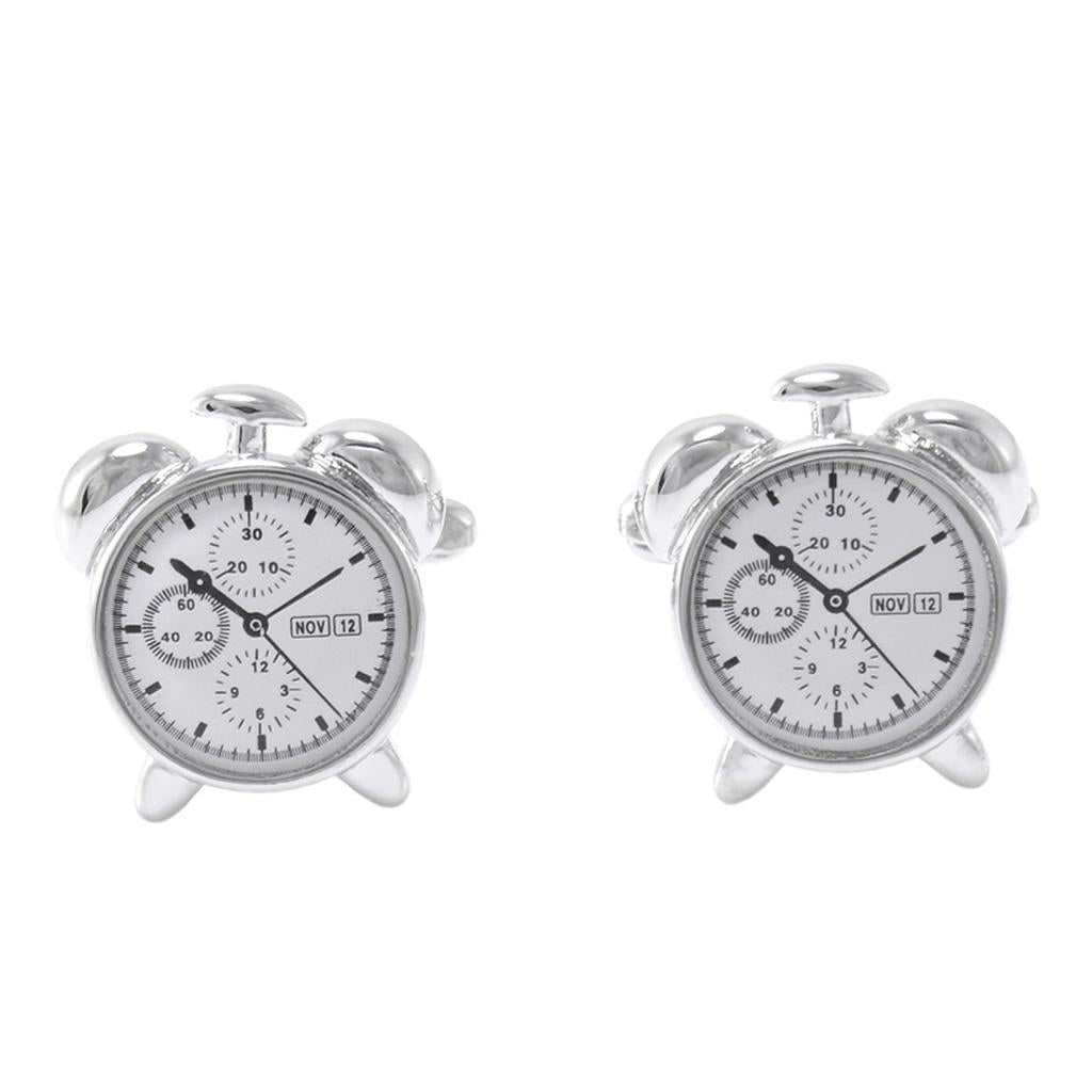 • Unique Elegant design Silver Alarm Clock Metal Cufflinks Collection for Classic Fashion