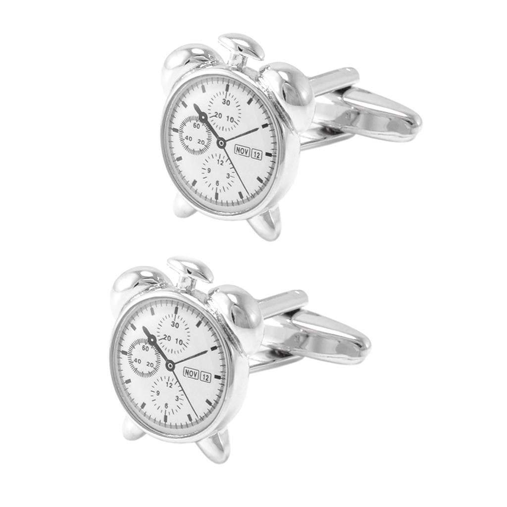 Cute Alarm Clock Silver Cuff Link Wedding Party Xmas Gift Mens Cufflinks